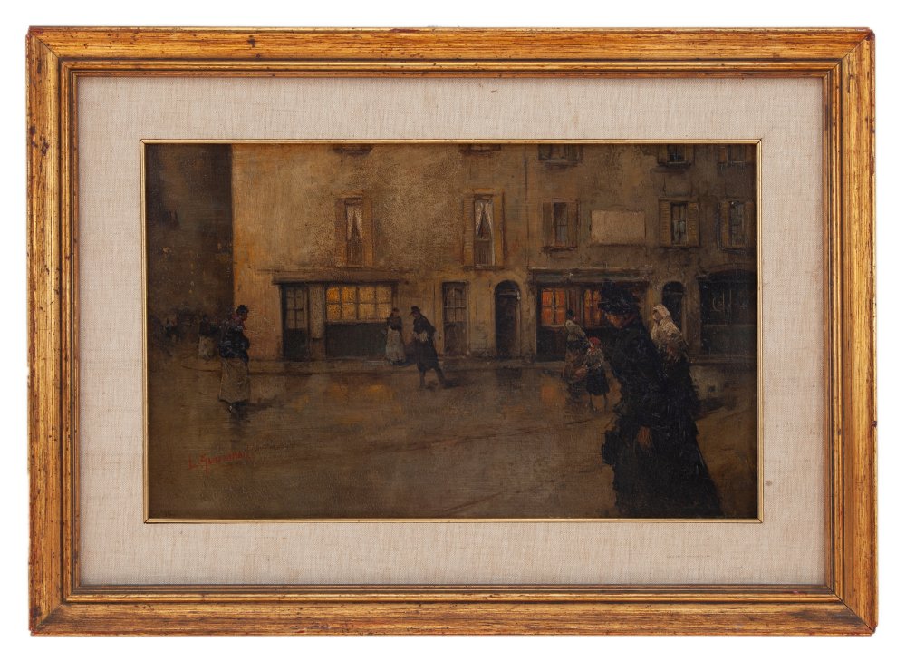 Luca Andrea Guizzardi Milano? Scena milanese Olio su tavola cm 28,5x46