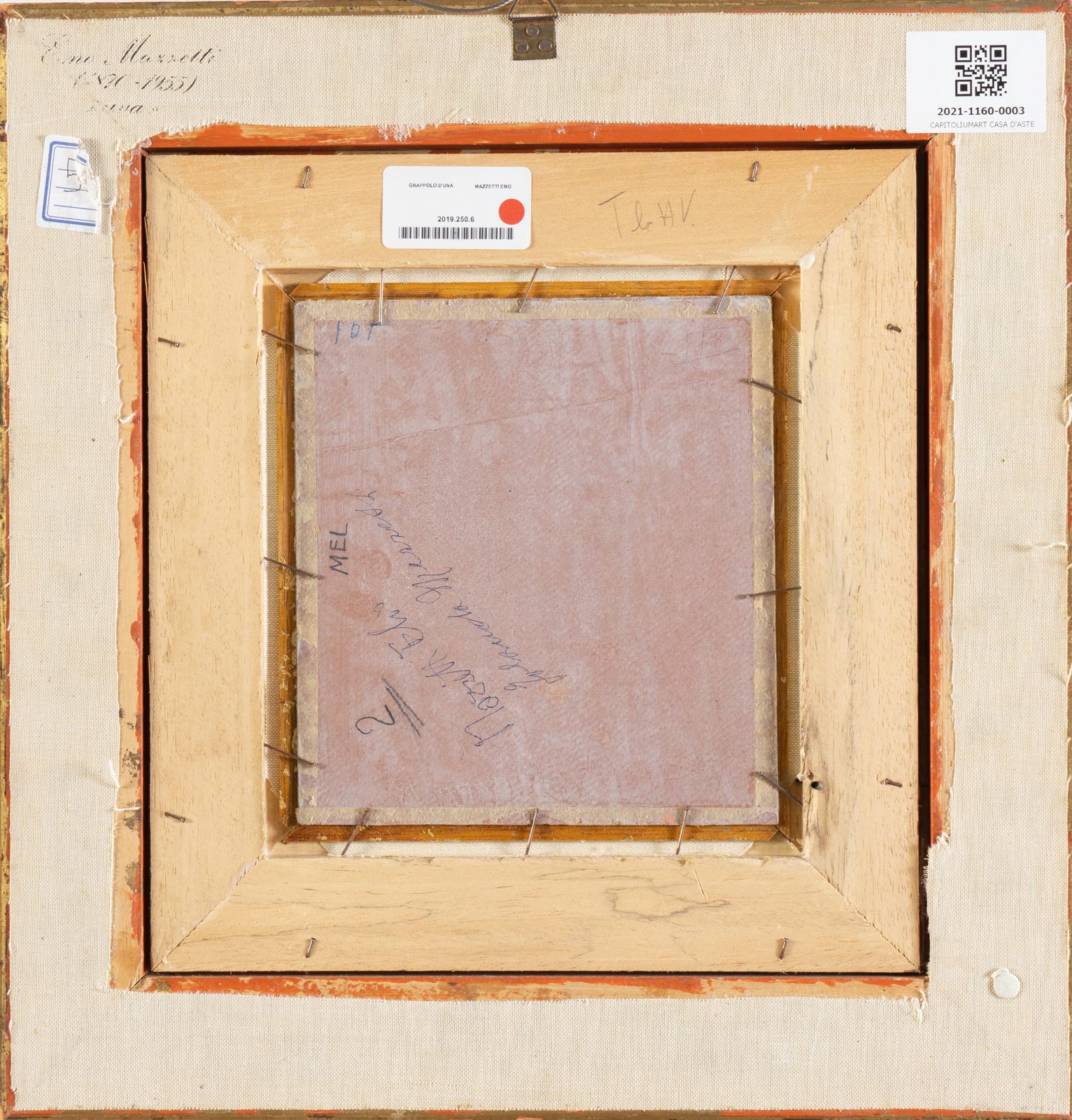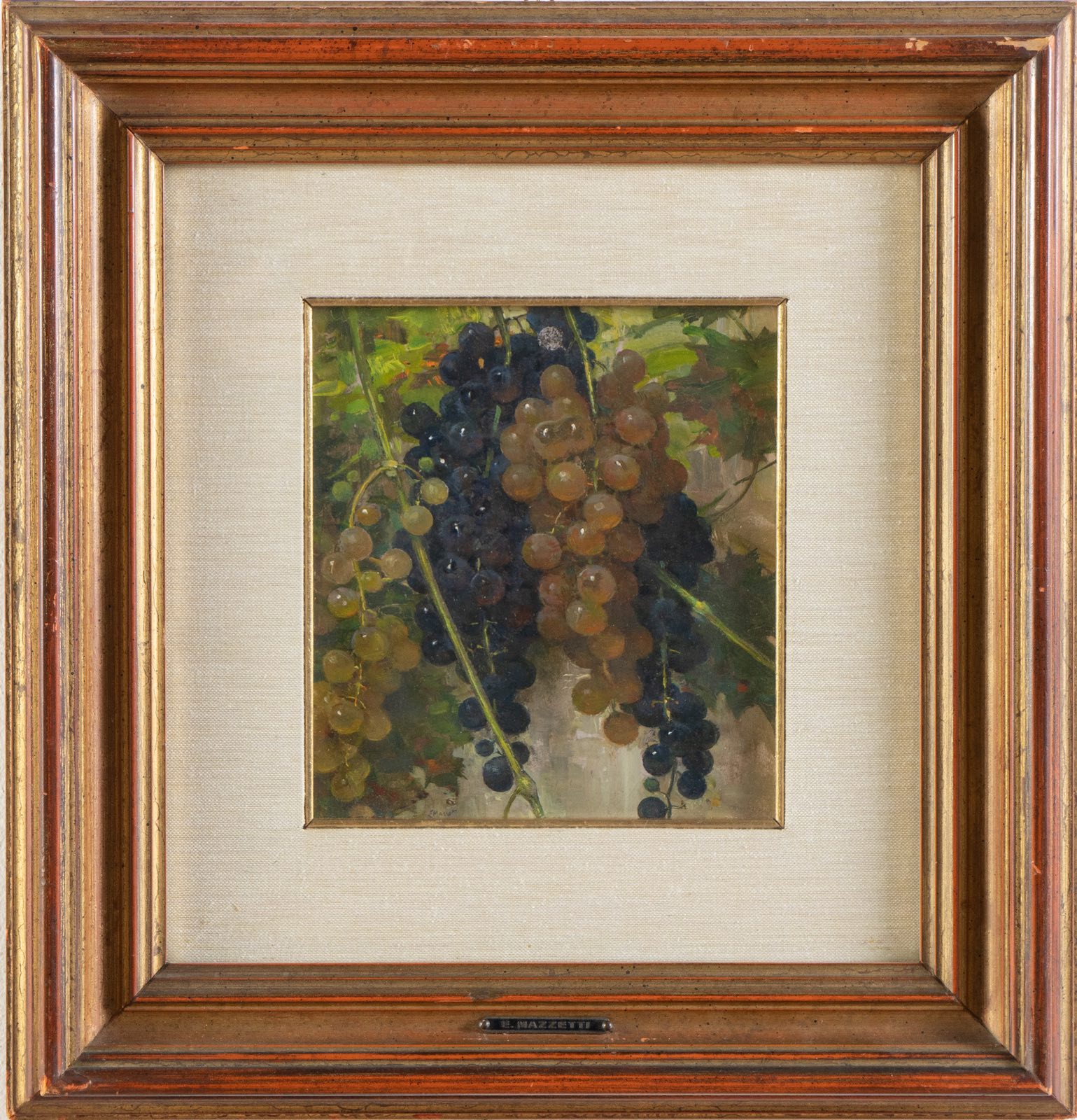 Emo Mazzetti (Treviso 1870 - Venezia 1955), “Grappolo d’uva”.Olio su cartone, firmato in basso al centro, reca al retro iscrizione “Mazzetti Emo/Jolanda Mazzetti”, H cm 20x18