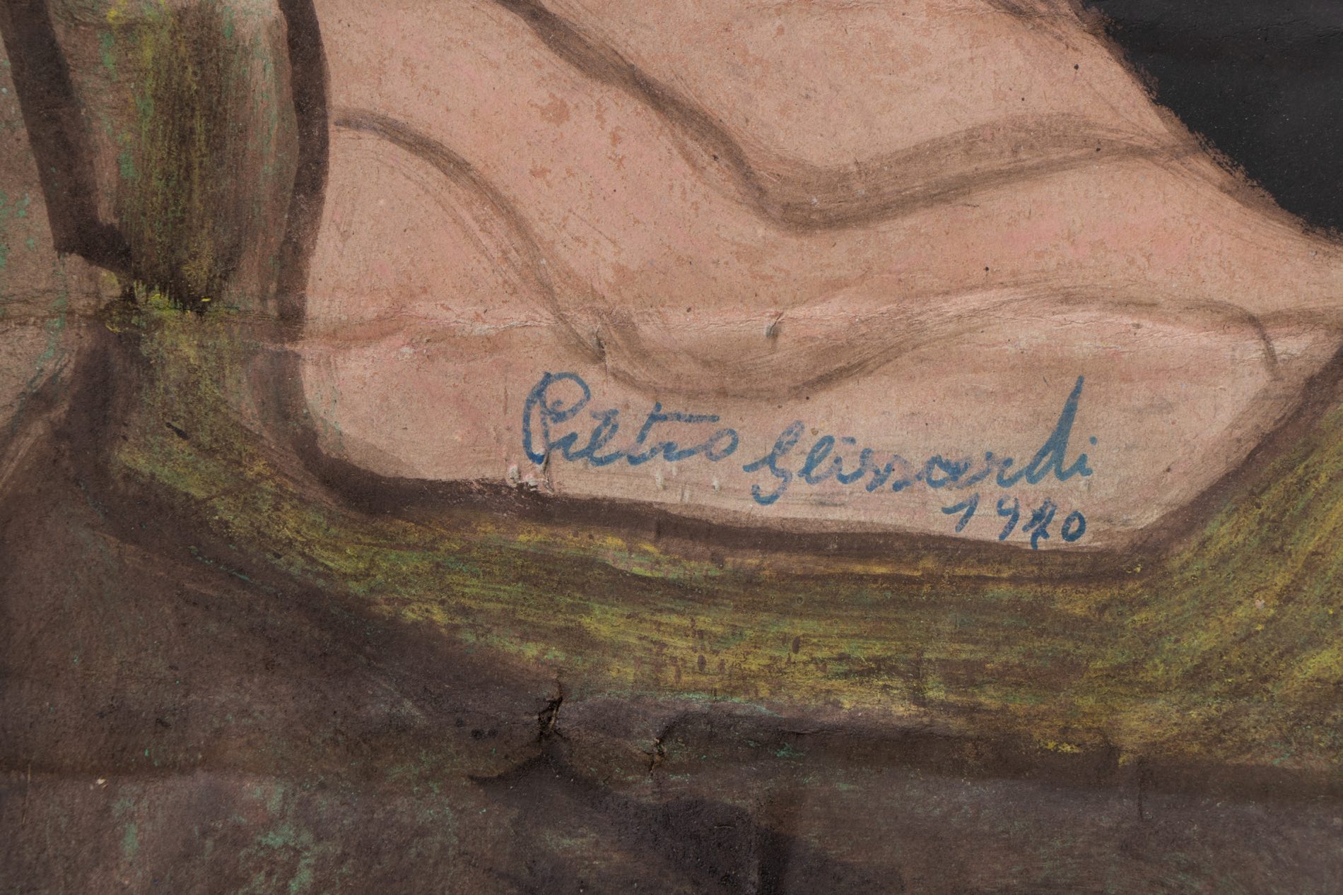 Pietro Ghizzardi (Viadana 1906 - Boretto 1986), “Ritratto femminile”, 1970.Tecnica mista su cartone, reca al centro firma e data, H cm 79x49 (difetti)