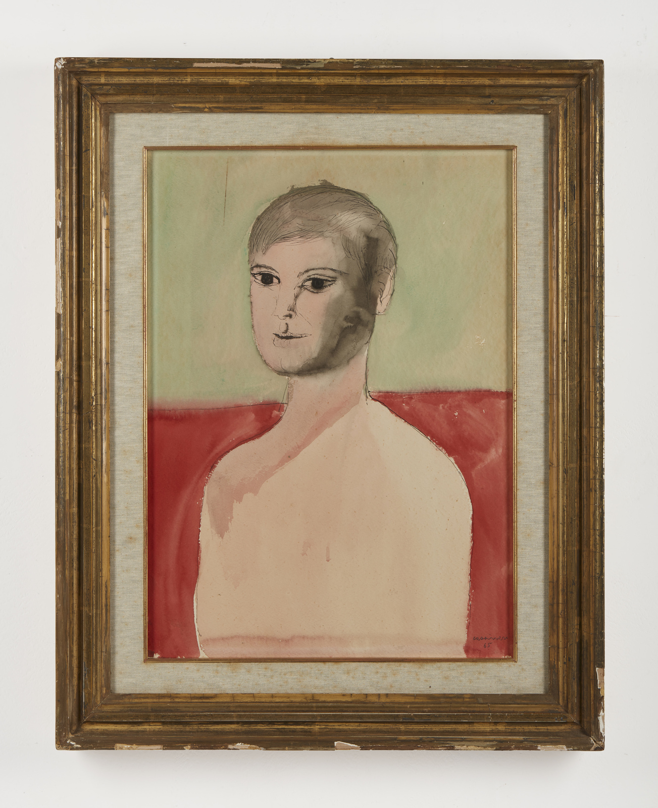CASSINARI BRUNO (1912 - 1992) Ritratto di donna. 1965. Tecnica mista su carta su tela. Cm 39,50 x 54,50. Firma e anno in basso a destra. Autentica dell'artista su fotografia. Provenienza: Collezione Decca - Besner, Piacenza. Lievi difetti. Cornice presente
