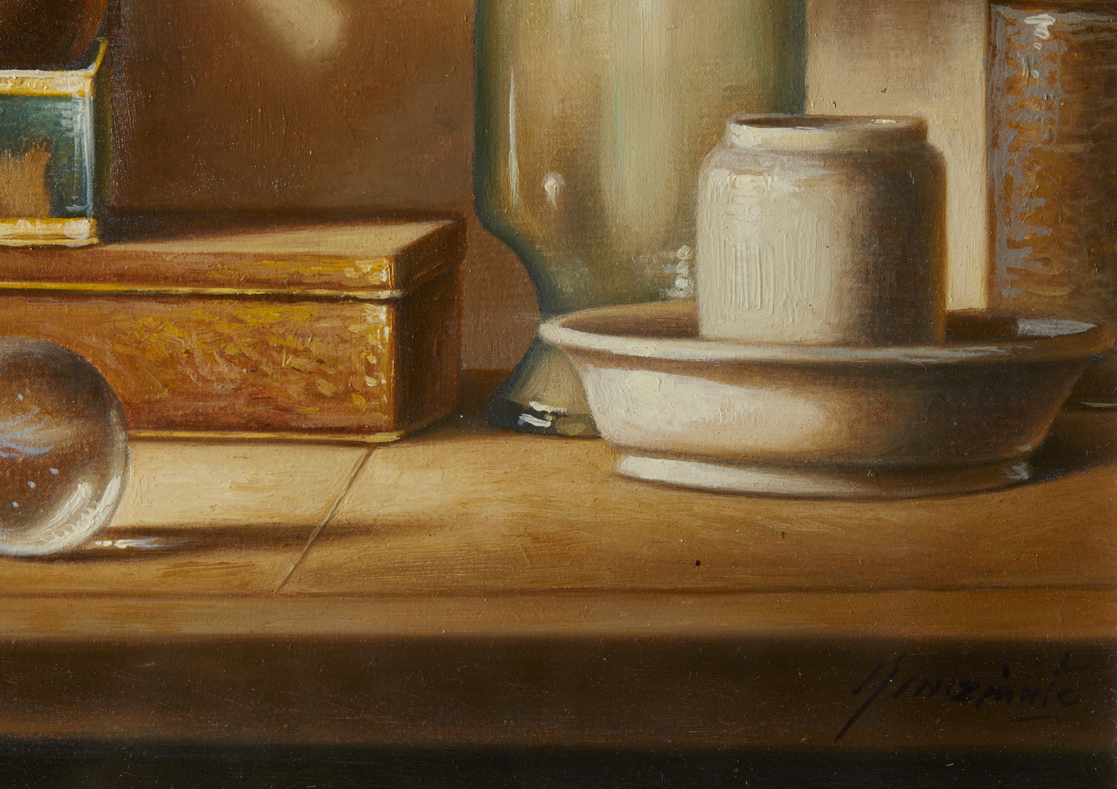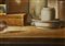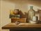 NUNZIANTE ANTONIO (n. 1956) Oggetti. 2016. Olio su tavola. Cm 24,00 x 18,00. Firma in basso a destra. Al retro titolo, firma e anno. Opera archiviata presso l'Archivio Antonio Nunziante come da documentazione fotografica allegata all'opera riportante il relativo numero d'inventario. Cornice presente