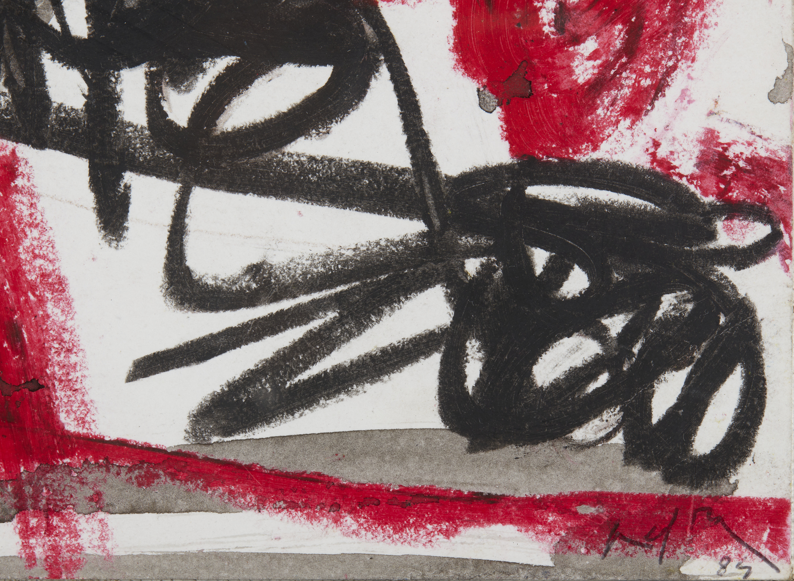 VEDOVA EMILIO (1919 - 2006) Pagine '84. (Ciclo II-13). 1984. Tecnica mista su carta intelata. Cm 25,00 x 17,50. Firma e anno in basso a destra. Opera archiviata presso l'Archivio Emilio Vedova, Venezia, come da documentazione fotografica allegata all'opera riportante il relativo numero d'inventario e la firma dell'artista. Cornice presente