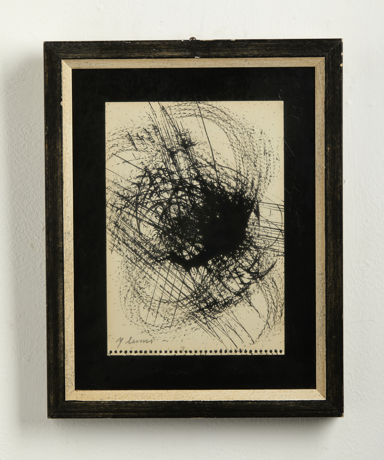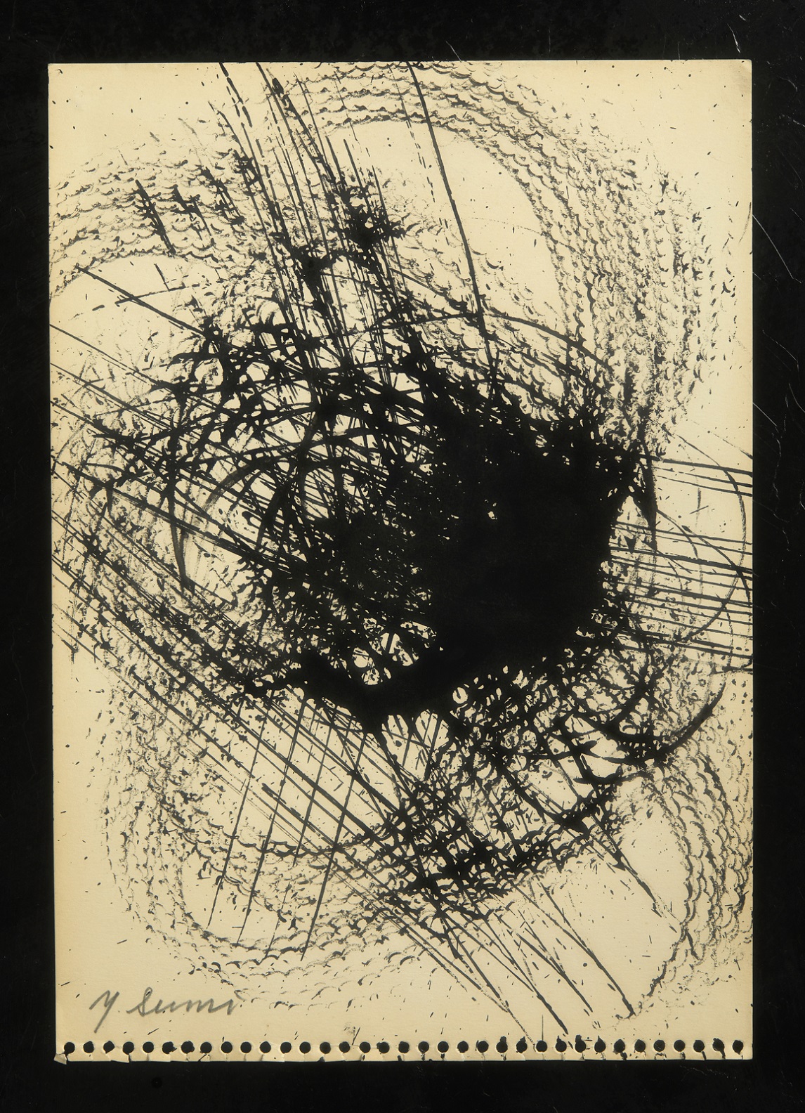SUMI YASUO (n. 1925) Early gutai work sketch 03. 1956. Inchiostro su carta. Cm 18,00 x 25,00. Firma in basso a sinistra a matita. Autentica dell'artista riportante il relativo numero d'inventario. Cornice presente
