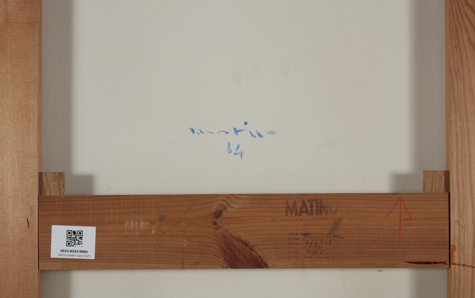 MATINO VITTORIO (n. 1943) Senza titolo. 1984. Acrilico su tela. Cm 69,00 x 208,00. Firma e anno al retro. Provenienza: Collezione privata, Bergamo. Lievi difetti.