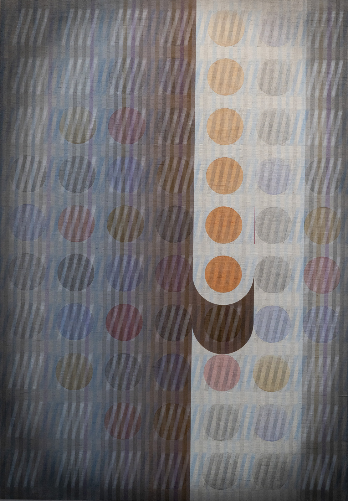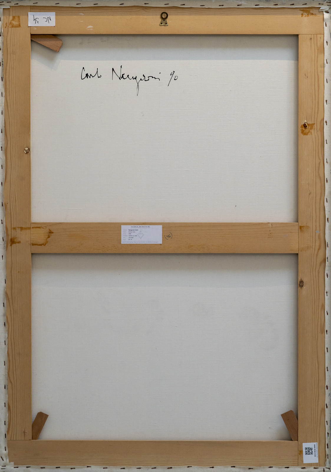 NANGERONI CARLO (n. 1922) Contesto+Catalizzatore. 1990. Acrilico su tela. Cm 87,00 x 123,50. Al retro firma, anno e cartiglio descrittivo Valente Arte Contemporanea, Finale ligure. Autentica dell'artista su fotografia. Provenienza: Valente Arte Contemporanea, Finale ligure; Collezione privata, Bergamo.