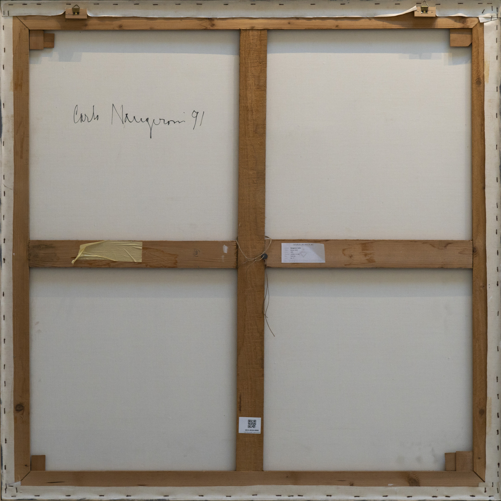 NANGERONI CARLO (n. 1922) Senza titolo. 1991. Acrilico su tela. Cm 120,00 x 120,00. Al retro firma, anno e cartiglio descrittivo Valente Arte Contemporanea, Finale ligure. Autentica dell'artista su fotografia. Provenienza: Valente Arte Contemporanea, Finale ligure; Collezione privata, Bergamo.