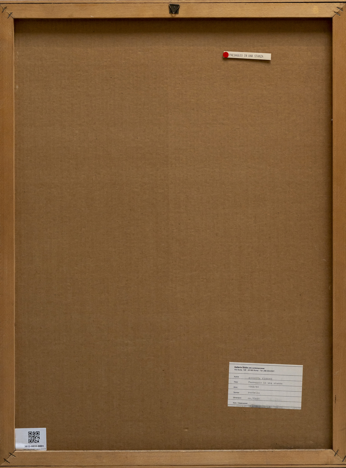 FIORONI GIOSETTA (n. 1932) Paesaggio in una stanza. 1983. Pastello su carta. Cm 50,00 x 70,00. Firma e anno in basso a destra. Al retro cartiglio descrittivo Galleria Giulia Arte Contemporanea, Roma. 1983-1984. Cornice presente