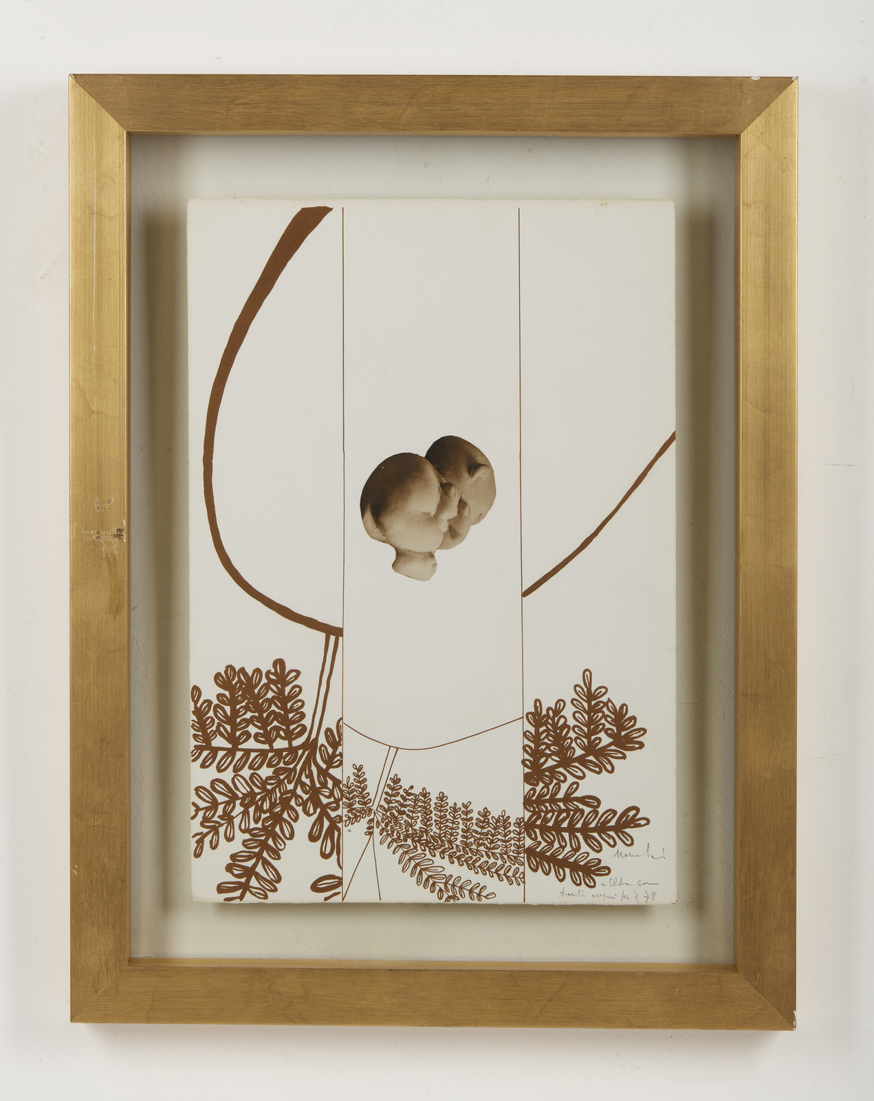 LAI MARIA (1919 - 2013) Senza titolo. 1977. Inchiostro e tecnica mista su base serigrafica. Cm 35,00 x 50,00. Firma e dedica in basso a destra. Opera archiviata presso l'Archivio Maria Lai, Lanusei, come da documentazione fotografica allegata all'opera riportante il relativo numero d'inventario. Lievi difetti. Cornice presente
