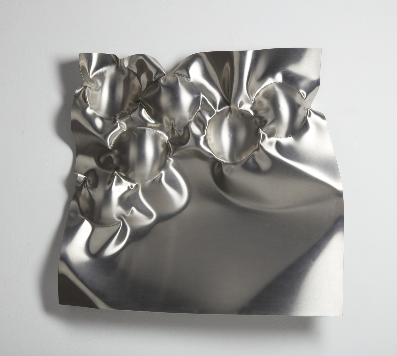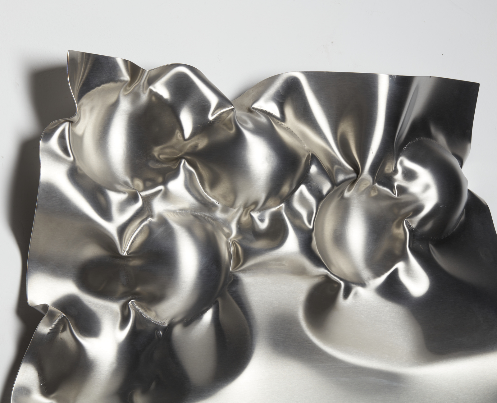 XHIXHA HELIDON (n. 1970) Energia. 2008. Acciaio satinato.. Cm 74,00 x 68,00. Autentica dell'artista su fotografia con il relativo numero d'inventario. Pubblicazioni: Xhixha - Leggero come l'acciaio a cura di Enrico Badellino, Edizioni Skira, p. 40.