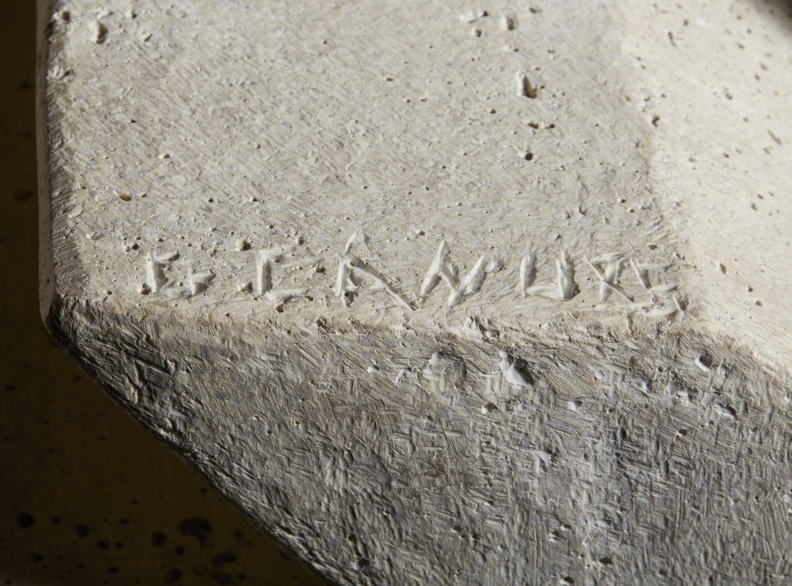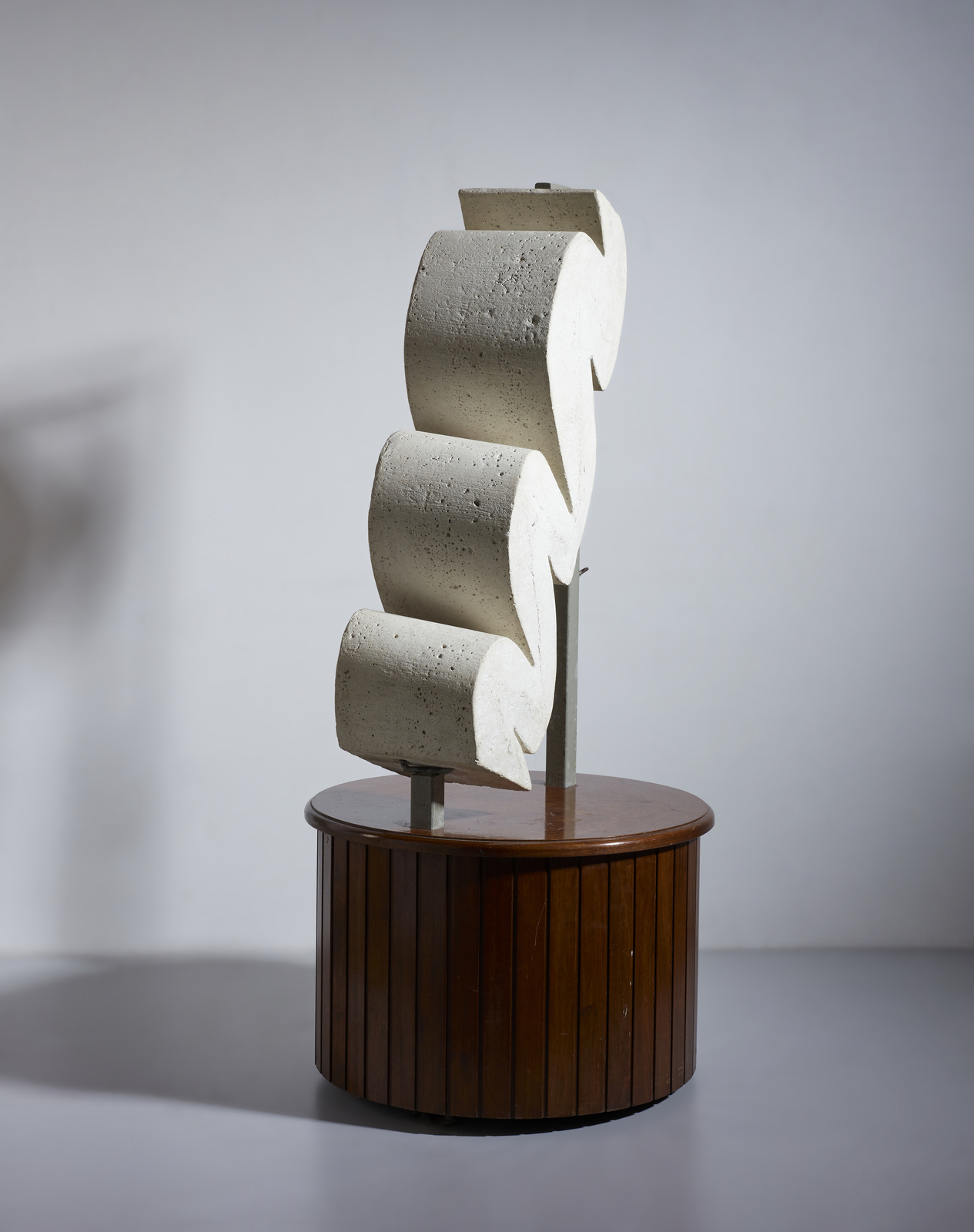 CANU GIOVANNI (n. 1942) Senza titolo. 1975. Pietra. Cm 33,00 x 94,00 x 24,50. Lotto composto dalla scultura in pietra e il relativo bozzetto preparatorio. Firma e anno incise. Misure con la base: 150x66x66 cm. Bozzetto preparatorio:Tecnica mista su carta. Firma e anno in basso a destra a pennarello. 49x100 cm. Lievi difetti.