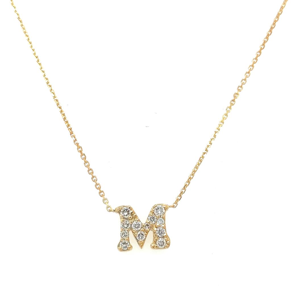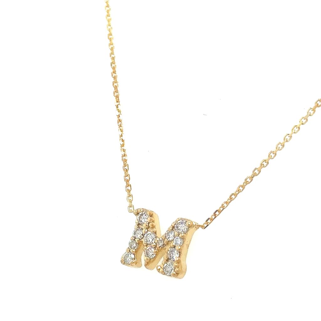 GIROCOLLO IN ORO GIALLO 14K 2.80 GR CON LETTERA M CON DIAMANTI PER 0.28 CT COLORE F-G PUREZZA VS 42CM CERTIFICATO ID - PND-M1