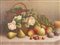 E. Oke (XX secolo), "Natura morta di frutta con cesto di fiori", olio su...