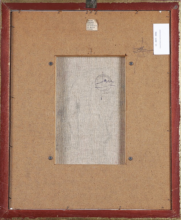 MIGNECO GIUSEPPE (1908 - 1997) Senza titolo. 1973. Tecnica mista su carta incollata su tela. Cm 20,00 x 30,00. Firma in basso al centro. Al retro reca il timbro della Galleria Leonardiana. Cornice presente