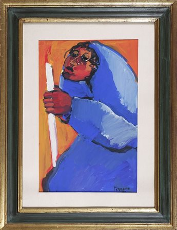 TERRUSO SAVERIO (1939 - 2003) Senza titolo. 1972. Olio su carta. Cm 42,50 x 61,00. Firma e anno in basso a destra. Cornice presente