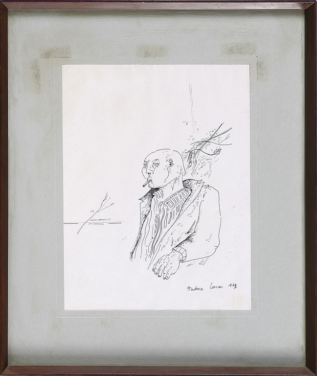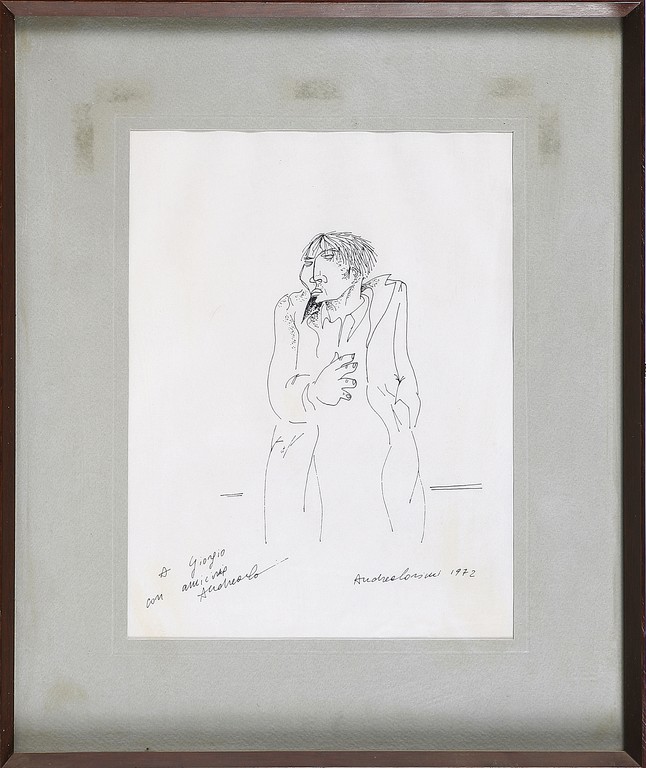 CORSINI ANDREA Senza titolo. 1972. China su carta. Cm 19,00 x 26,00. Firma e dedica in basso. Disegnato su entrambi i lati. Cornice presente