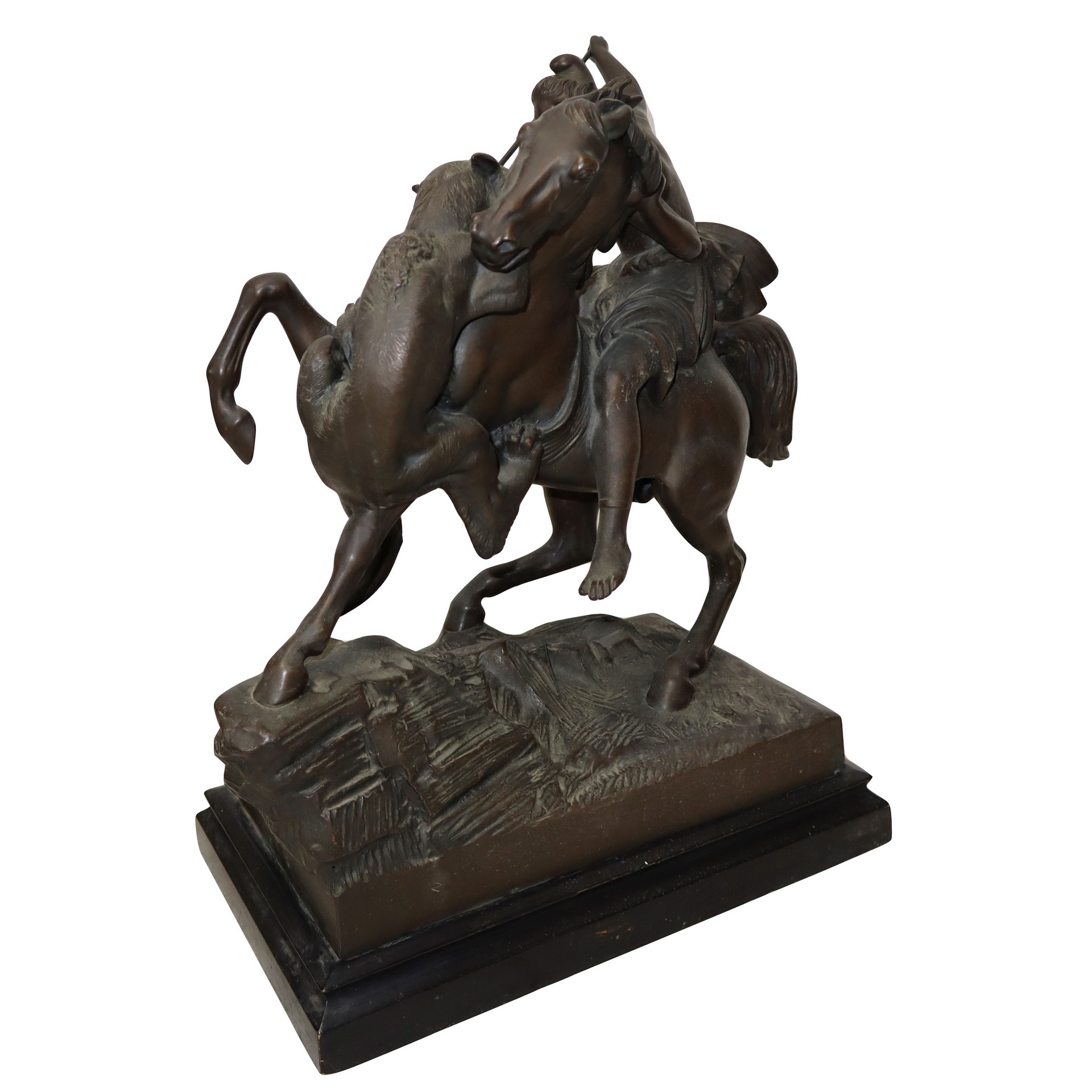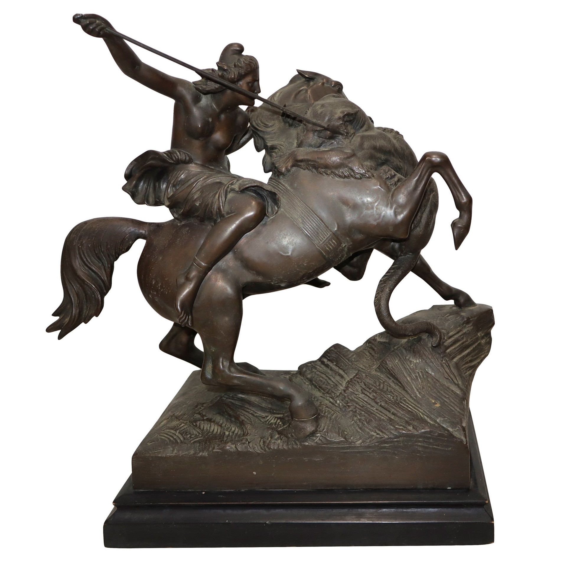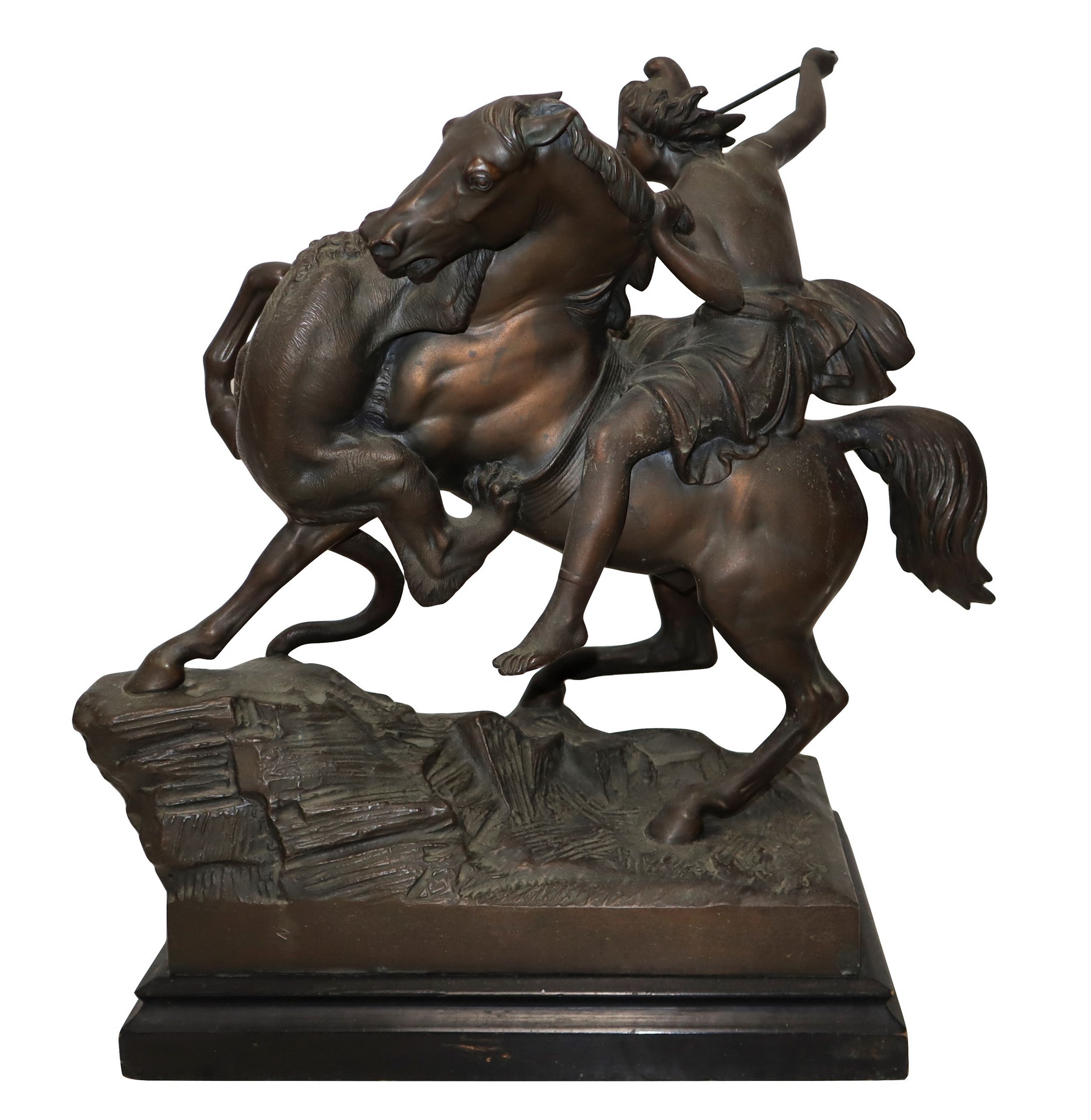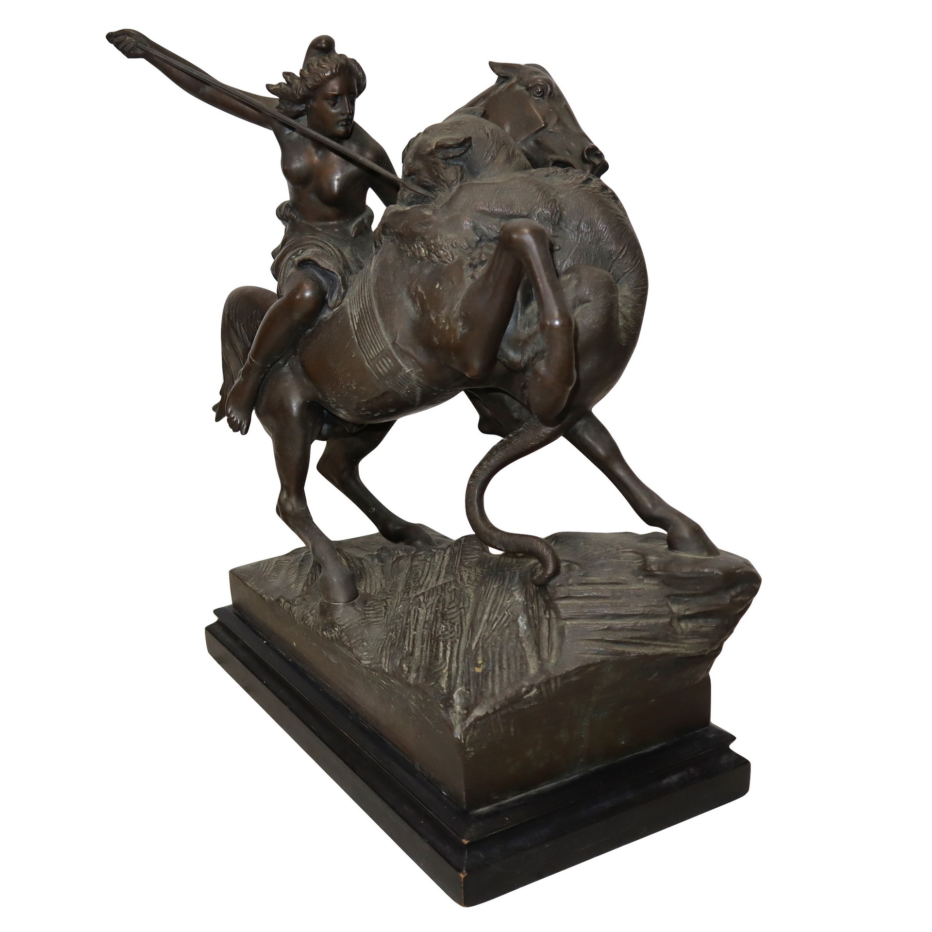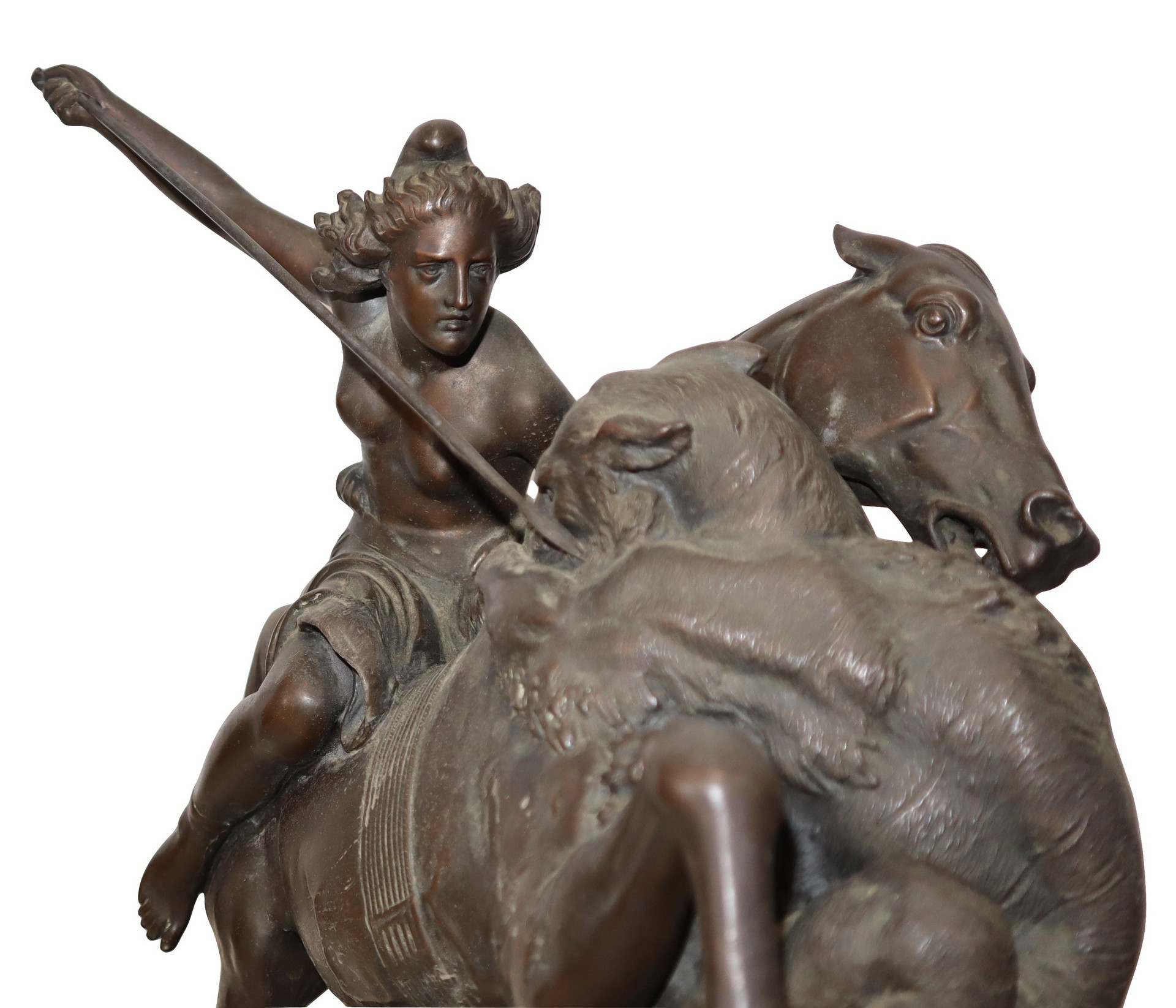 Tigre che attacca amazzone a cavallo H cm 46 x L 42 x P 20 Scultura in antimonio