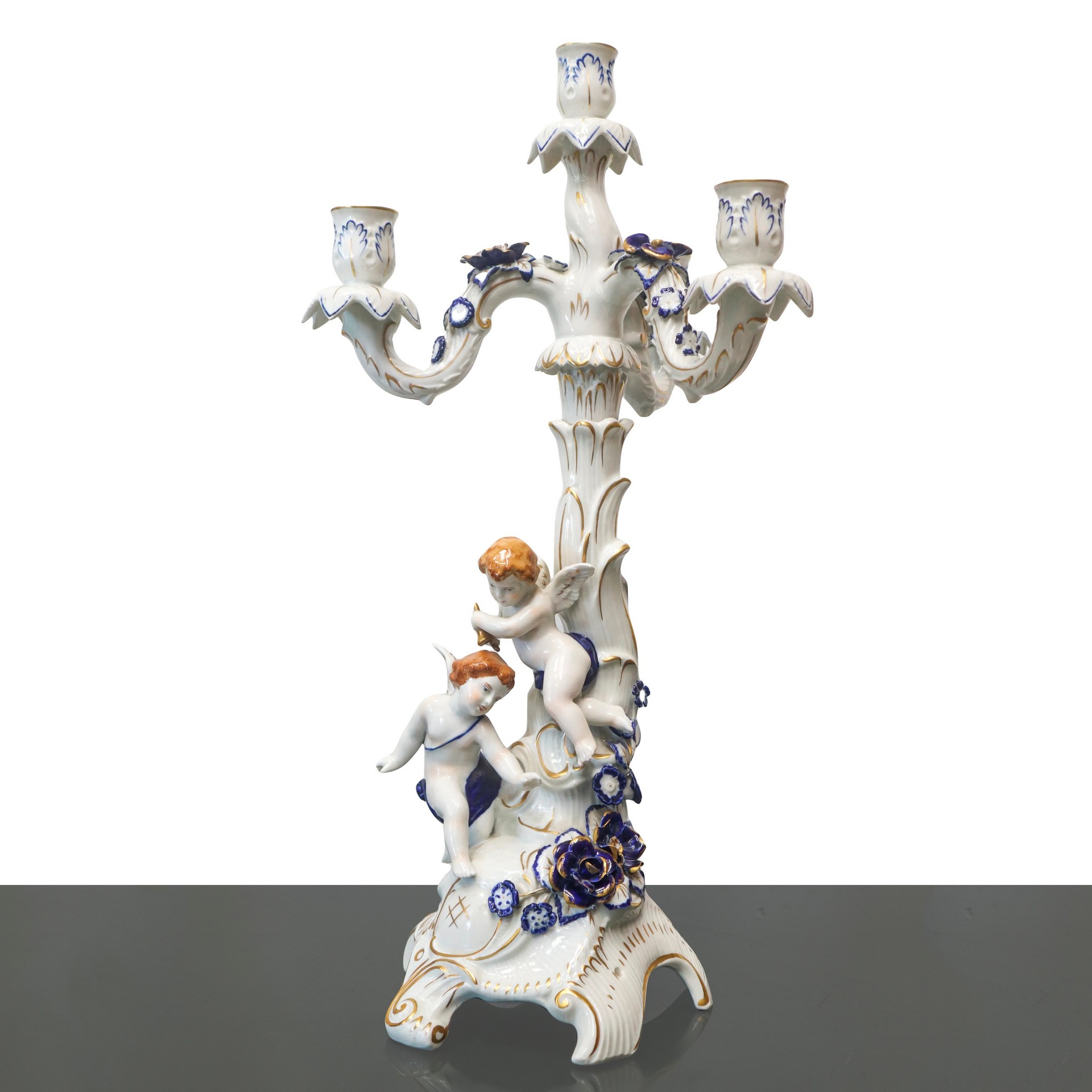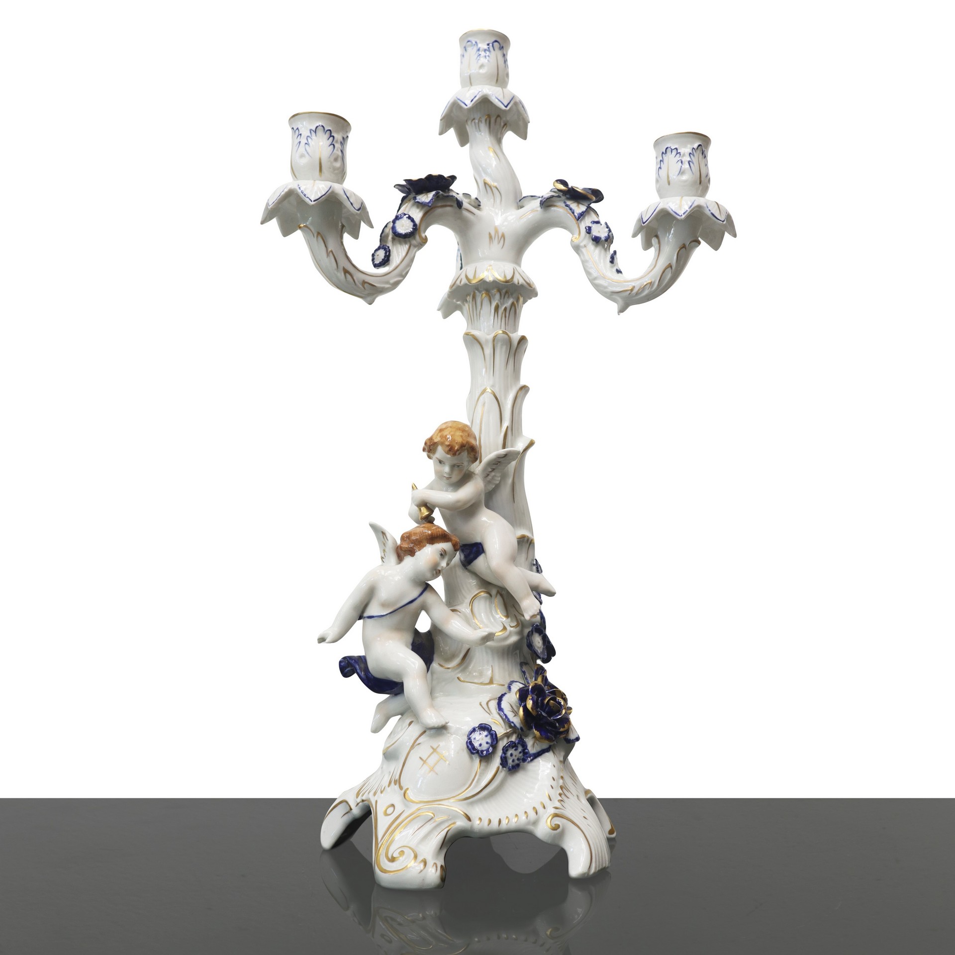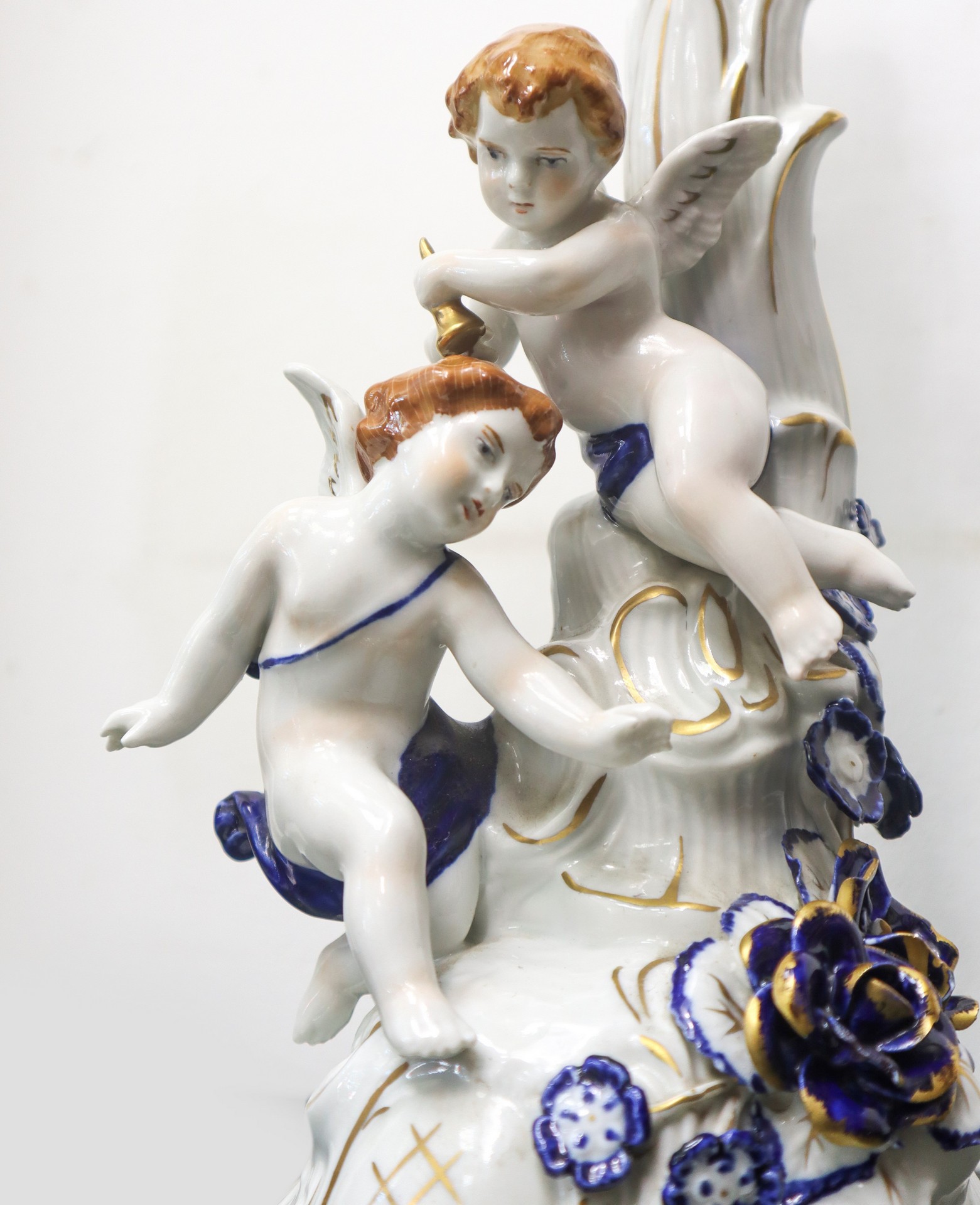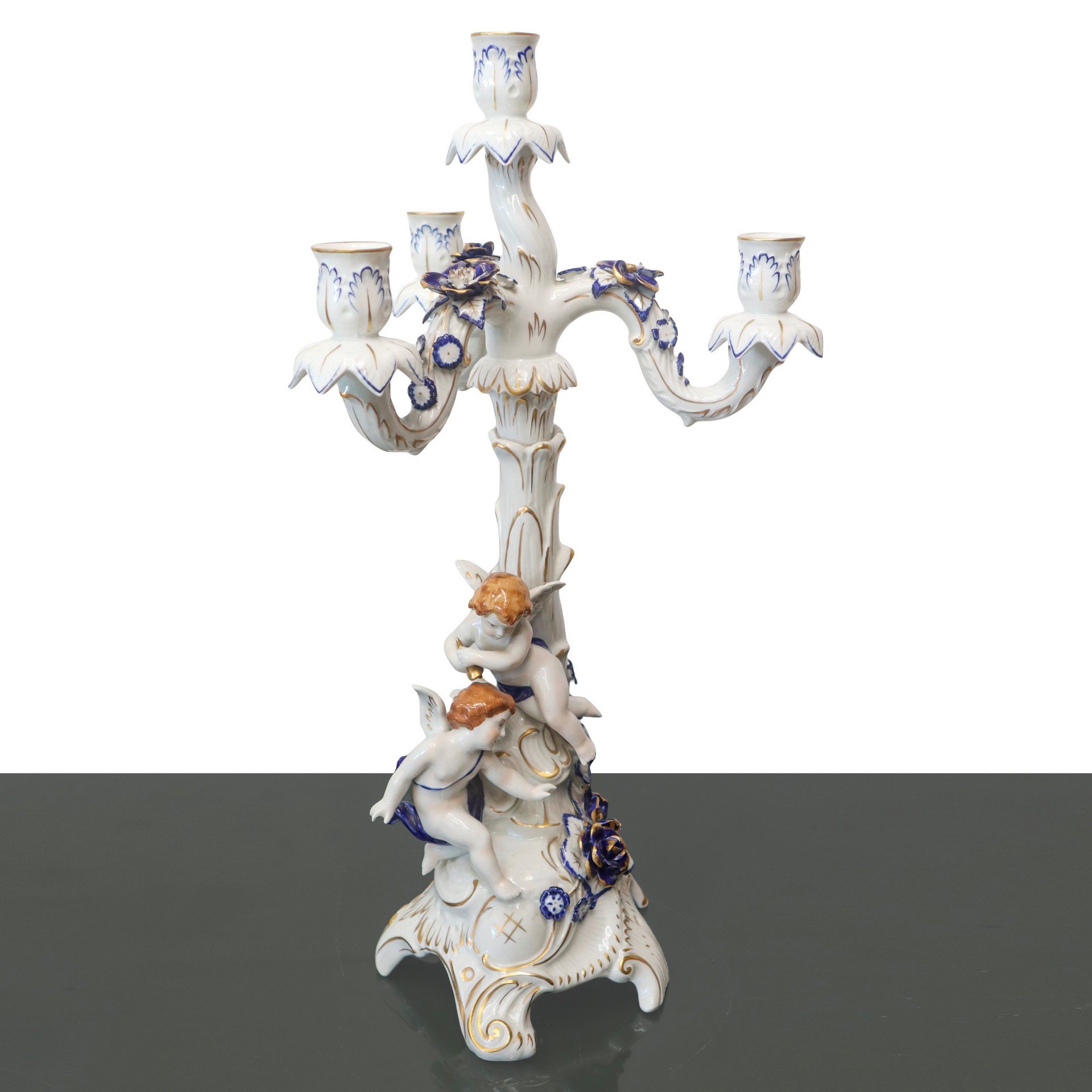 Plaue Schierholz Germania (1816) - Coppia di candelieri a quattro luci in porcellana, con angioletti