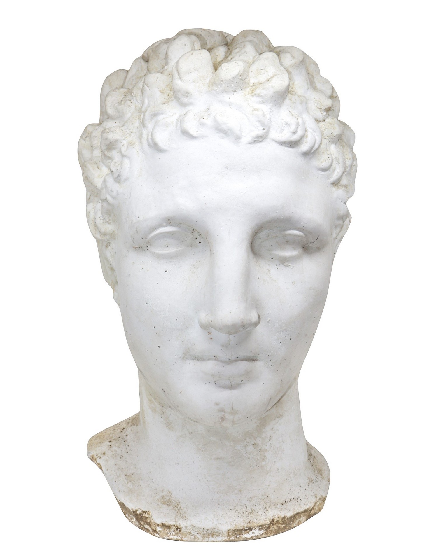 Testa di giovane Demetrio Poliercete Re di Macedonia, XVIII secolo h m 35, base cm 16 Scultura malta cementizia, dall'originale greco III Secolo A.C.
