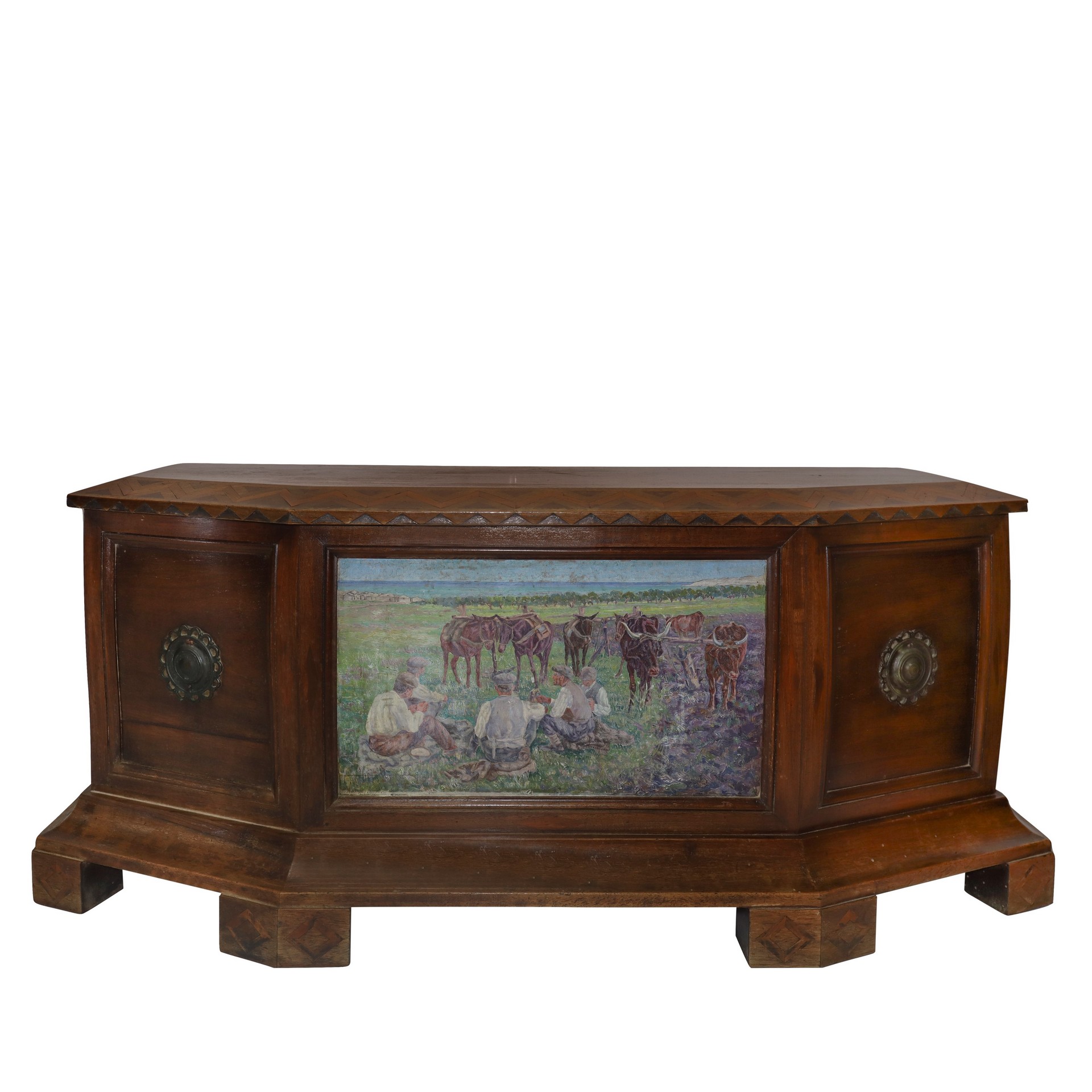 Roberto Rimini (Palermo 1888-1971) - Cassapanca con dipinto di Roberto Rimini