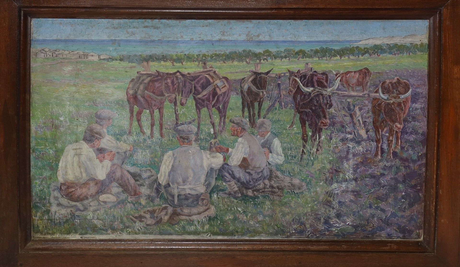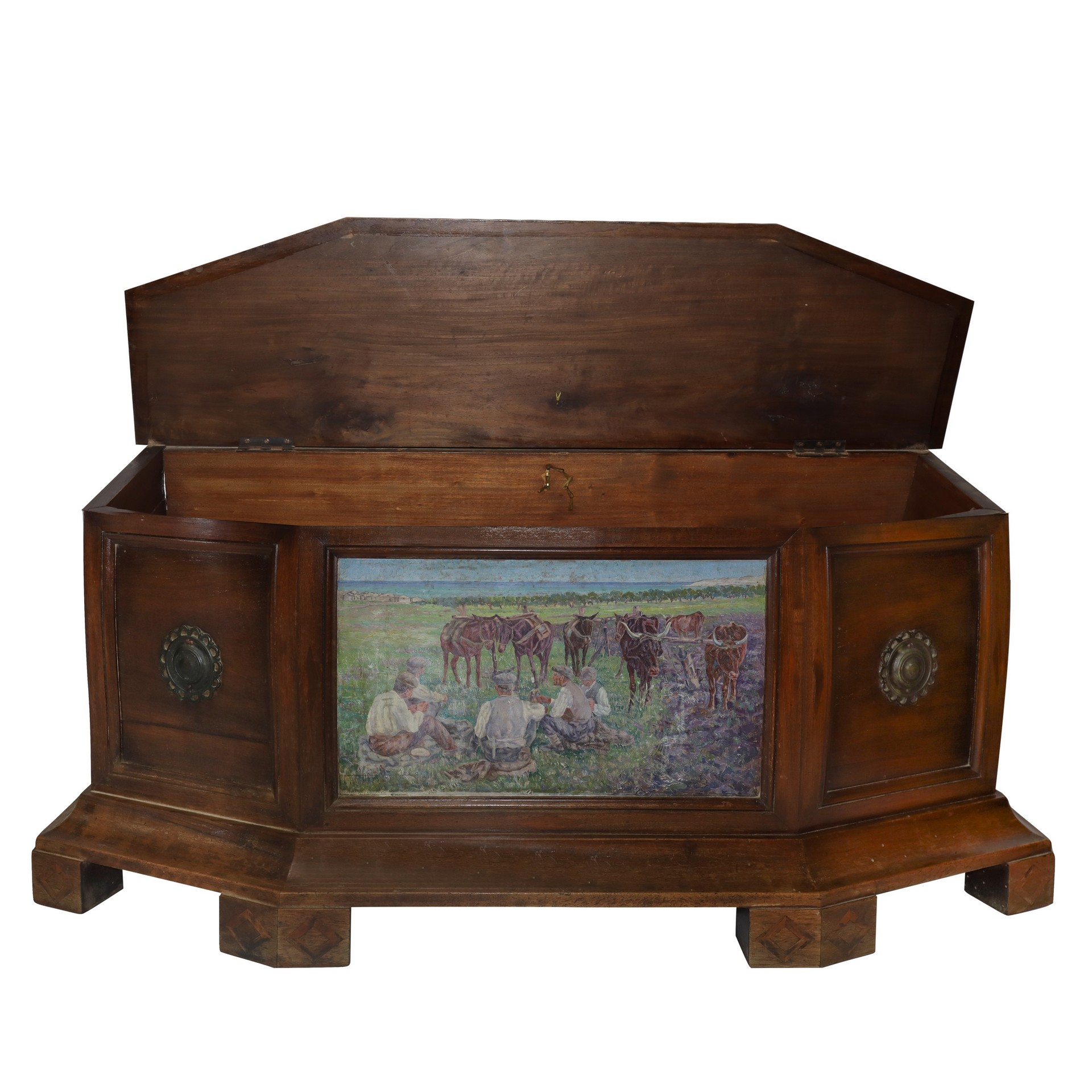Roberto Rimini (Palermo 1888-1971) - Cassapanca con dipinto di Roberto Rimini H cm 110 x L 45 x P 38, Olio su legno cm 40 x 25 Coperchio Con fronte dipinto dal pittore Roberto Rimini