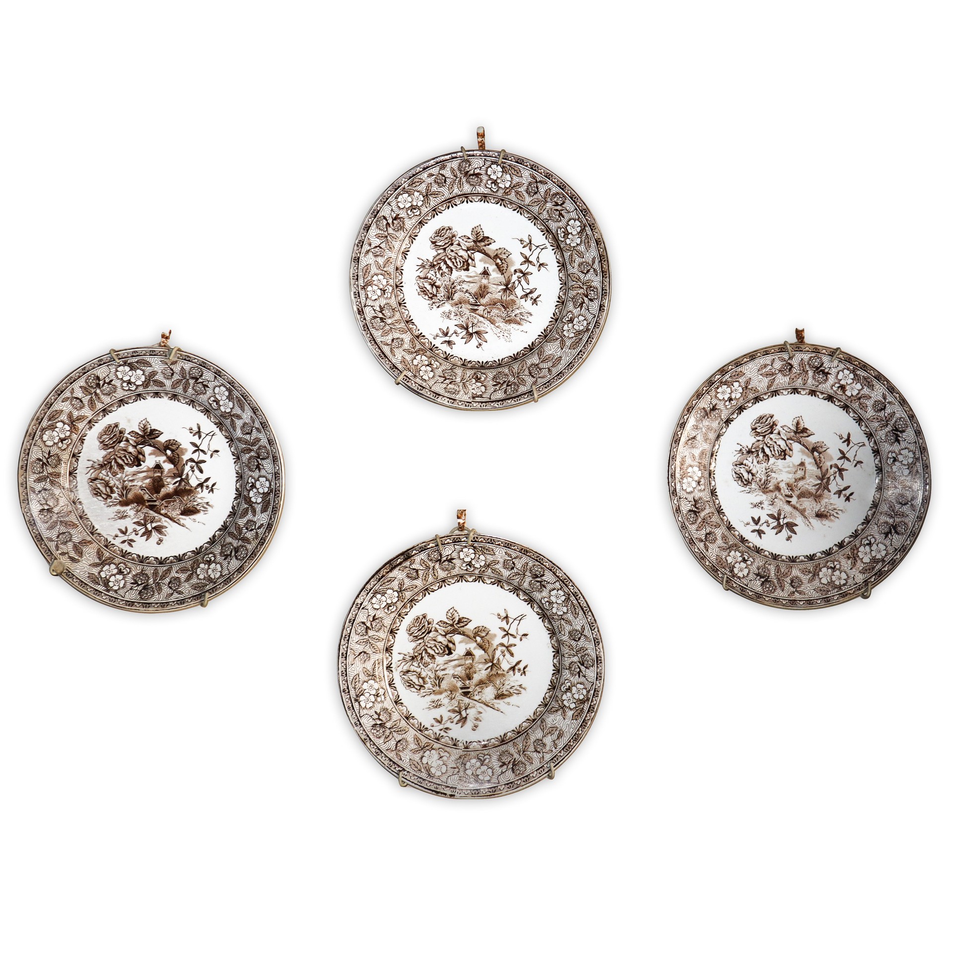 N. 4 piatti da muro con dipinti floreali