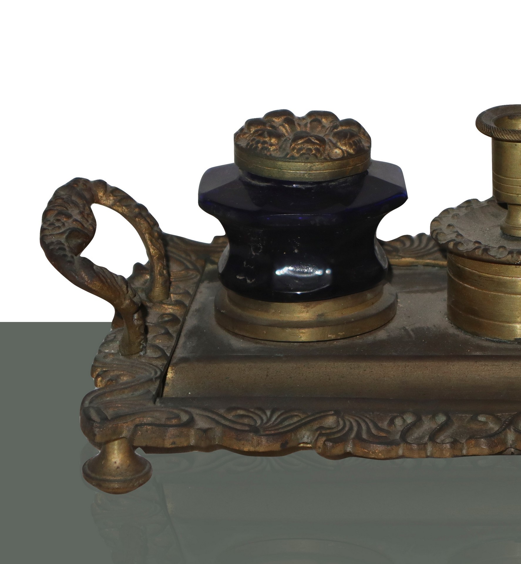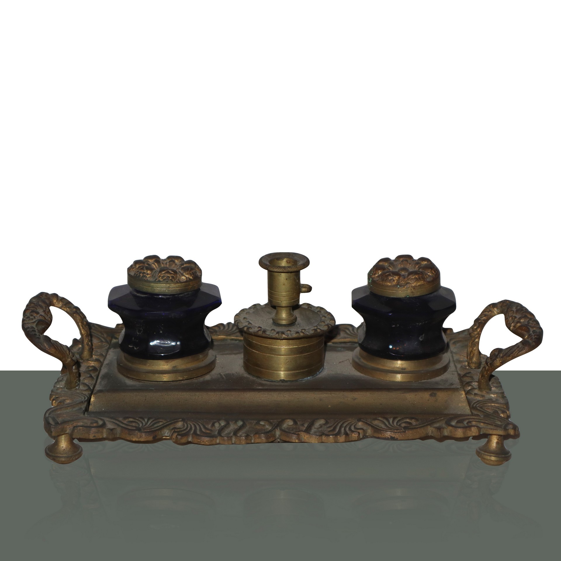 Calamaio in bronzo con portainchiostro in vetro, nineteen° secolo