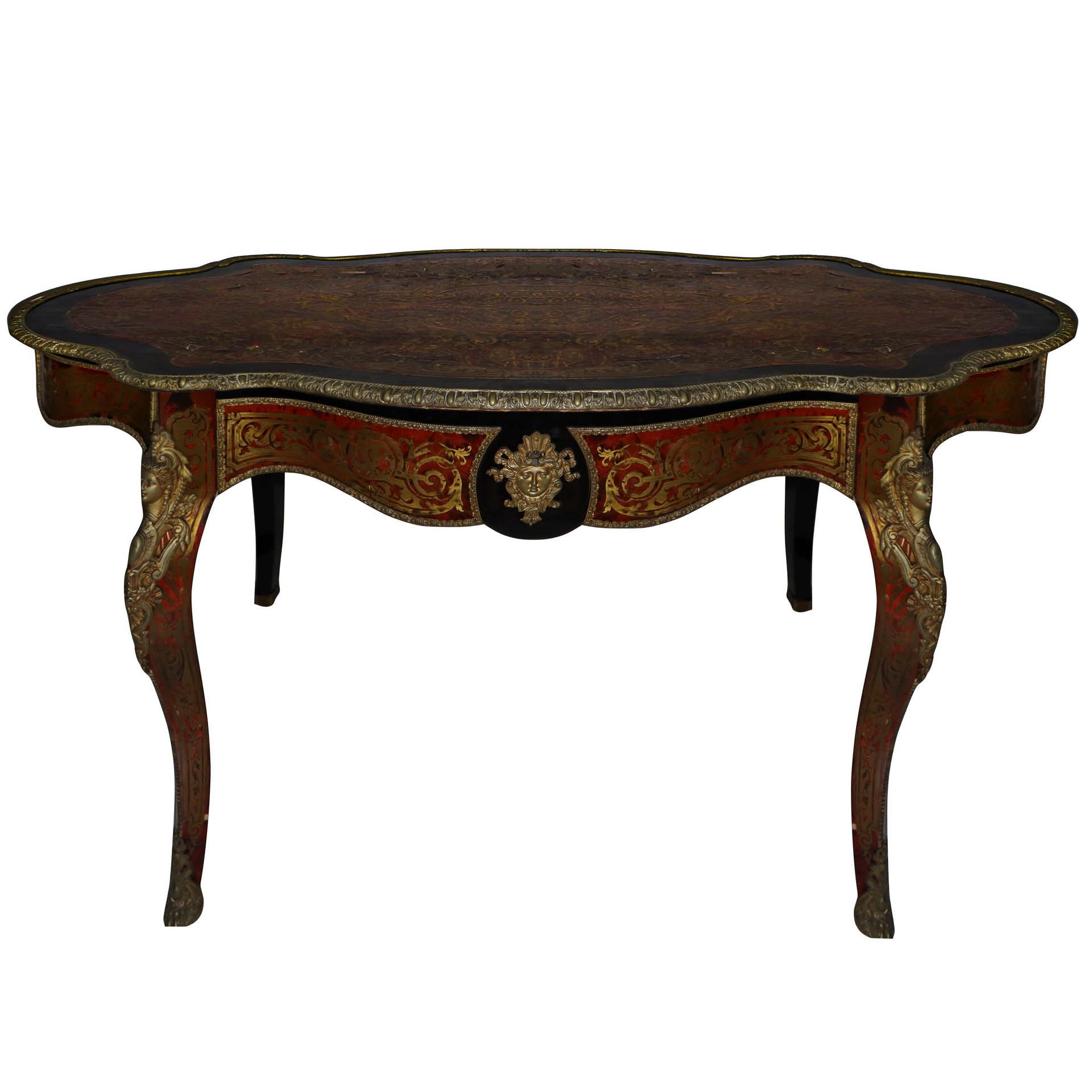 Tavolo boulle con bronzo applicato ai bordi del piano, 19° secolo France