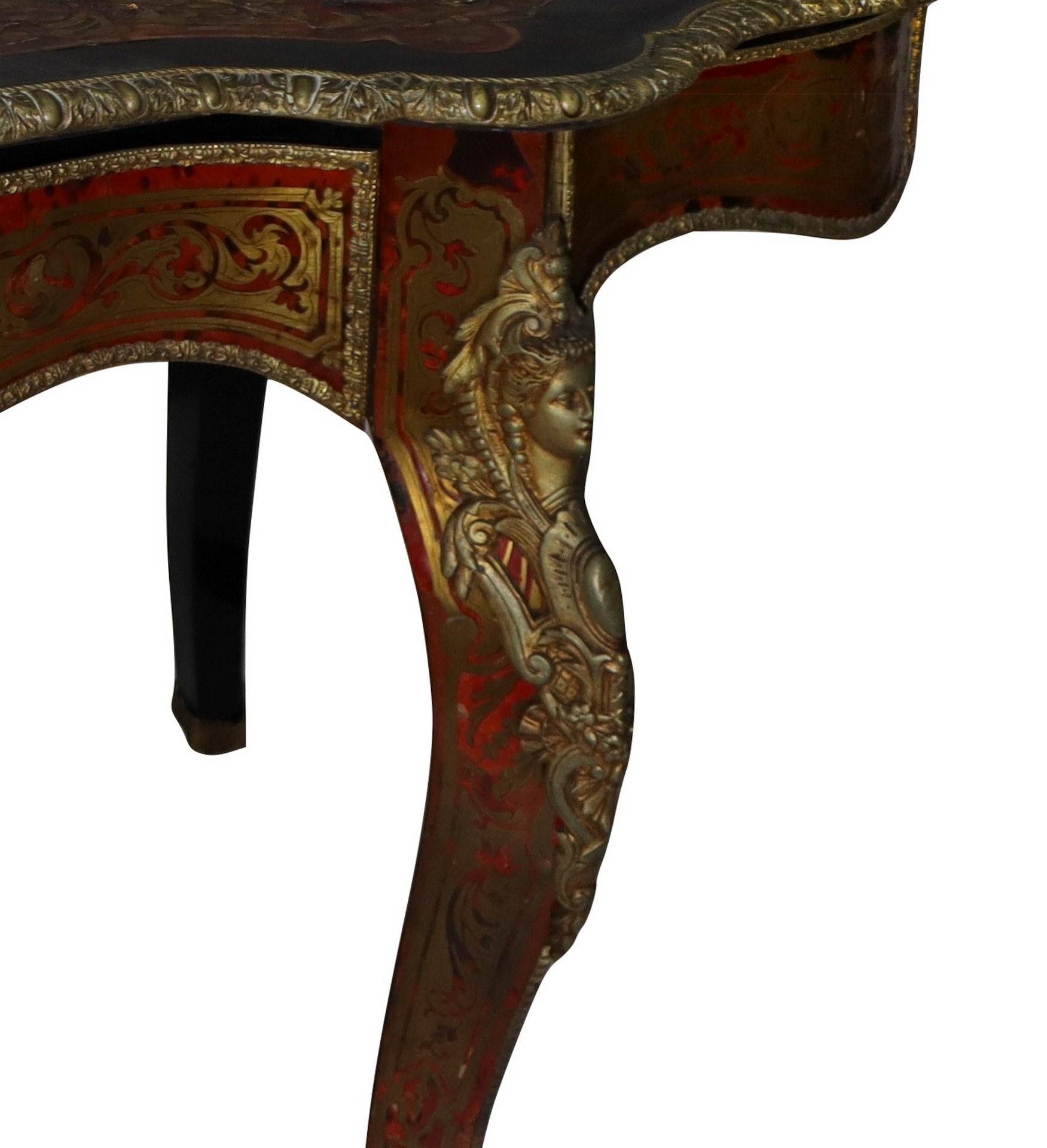 Tavolo boulle con bronzo applicato ai bordi del piano, 19° secolo France H cm 75 x 146 x 90 Bronzi raffiguranti cariatidi alle gambe. Piccole mancanze