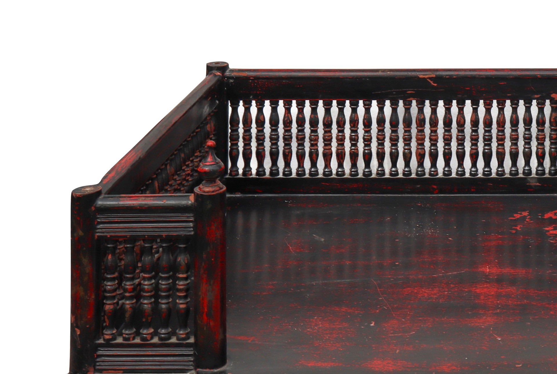 Sella da elefante palanchino Howdah, Fine 19° secolo L: 160 cm H: schienale: 78 cm, seduta: 49 cm Profondità: 74 cm Rari palanchini chiamati "Howdah", sella di elefante, anticamente utilizzato in Asia e in India per il trasporto di persone facoltose durante le battute di caccia e le cerimonie nuziali. Simbolo di grande ricchezza la "Howdah" poteva essere scolpita e talvolta decorata con drappeggi colorati.