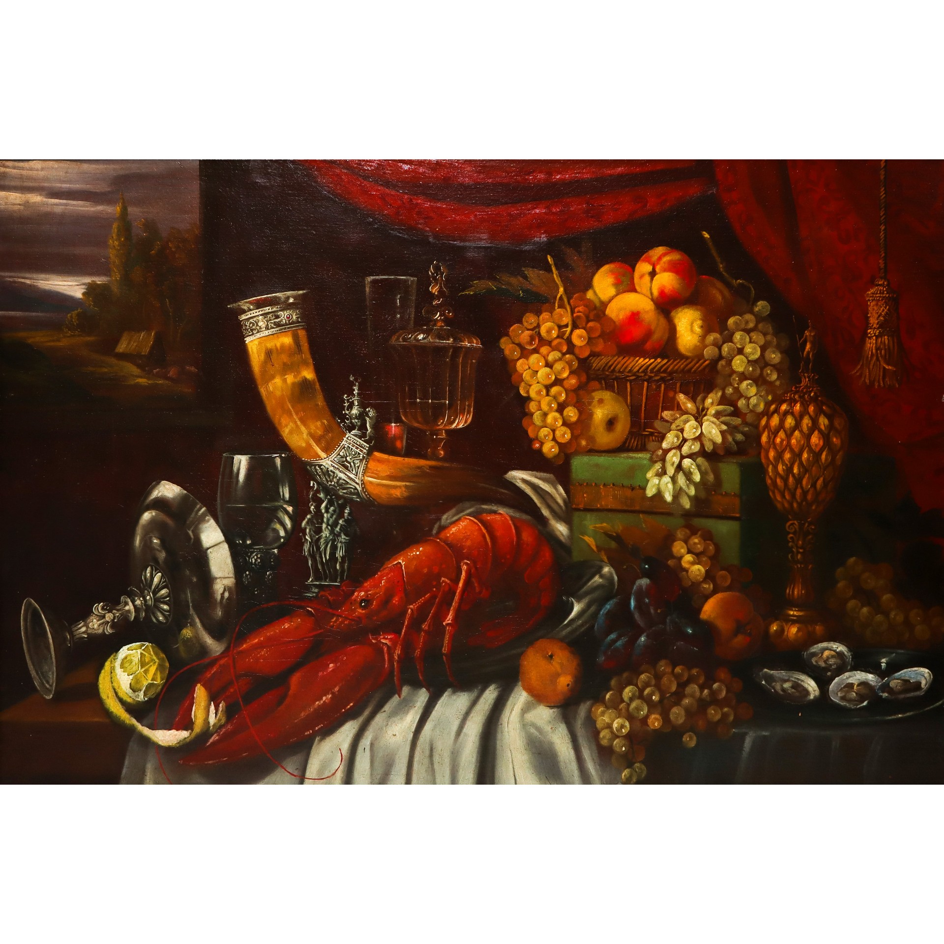 Lot 188 | Natura morta con cornucopia e aragosta, in importante cornice., European school, 19° secolo