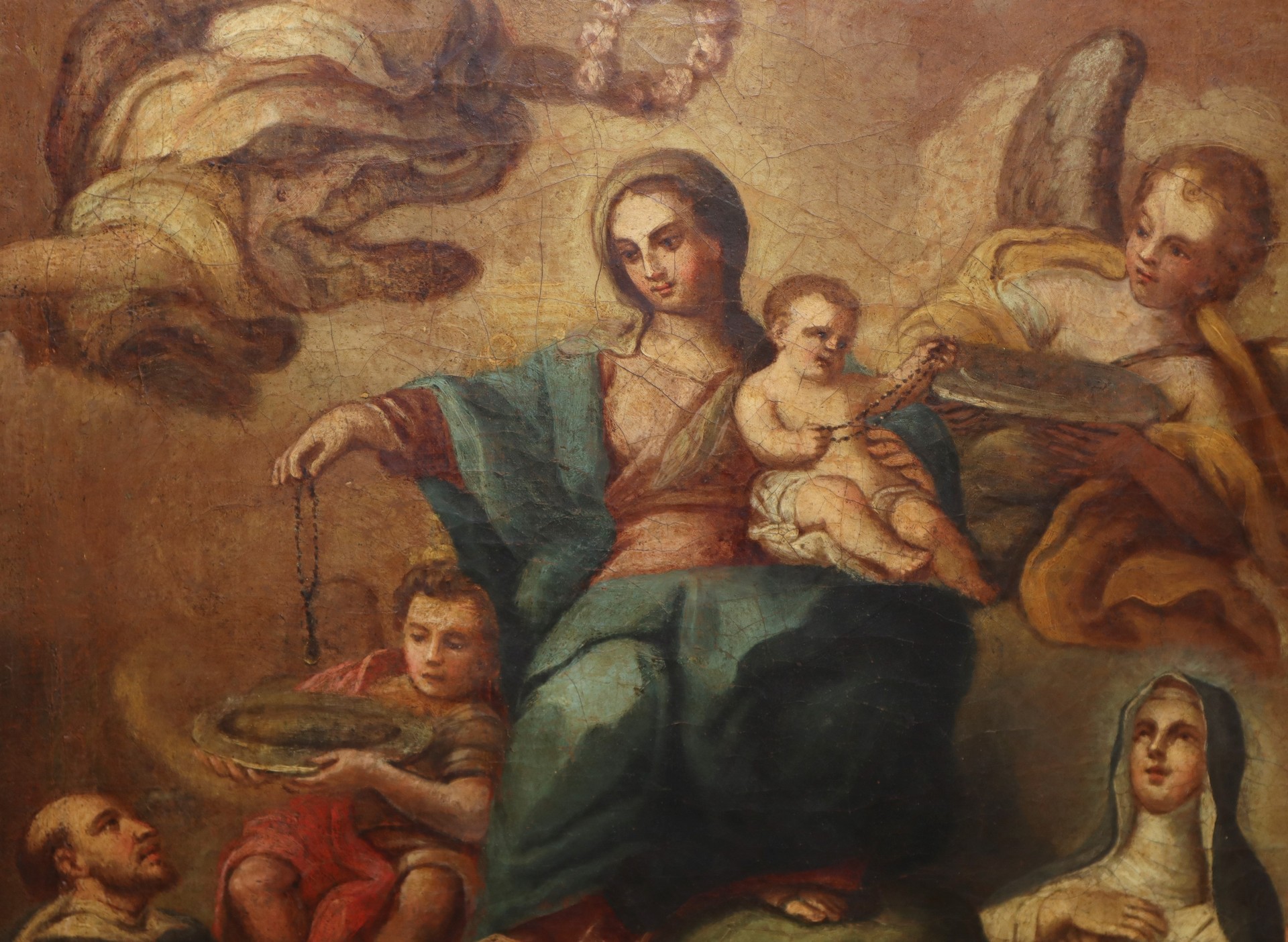Madonna del rosario con bambino Gesù, angeli e santi, Sicilian painter Fine 18th/Primi 19° secolo