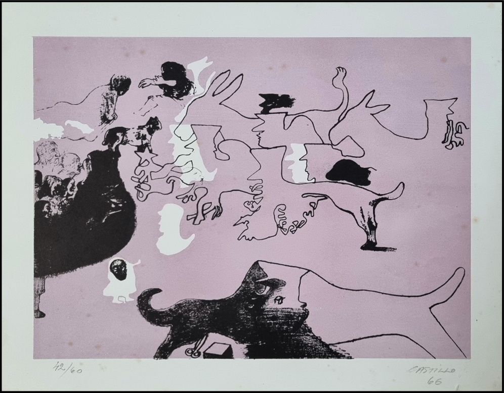 CASTILLO JORGE Spagna 1933 "Senza titolo" Litografia cm 35x50 del 1966. Firmata e datata sul fonte in basso a destra, tiratura 42/60 a sinistra. (Presenta piccole fioriture).