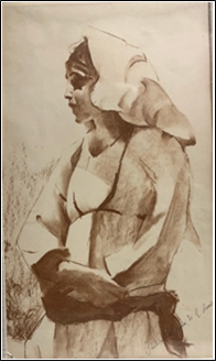AMISANI GIUSEPPE Pavia 1881 - Portofino 1941 "Studio dal vero di giovane fanciulla" Pastello seppia su carta, cm 19,5x32,5. Firmato sul fronte in basso a destra.