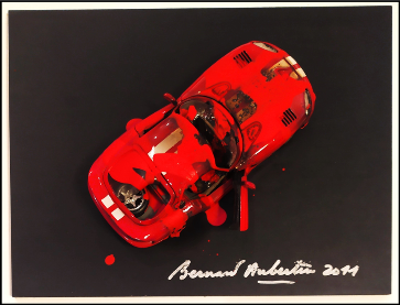 AUBERTIN BERNARD Francia 1934 - Germania 2015 "Voiture brulè" Modellino di macchina bruciata su tavola, cm 30x40 del 2011. Firmata e datata in basso a destra, provenienza studio dell'artista. Archivio su foto a cura della Rosenberg. Opera pubblicata sul catalogo della mostra "Voiutures dans le feu" a pag. 158.