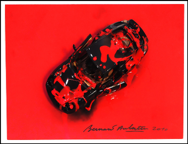AUBERTIN BERNARD Francia 1934 - Germania 2015 "Voiture brulè" Modellino di macchina bruciata su tavola, cm 30x40 del 2010. Firmata e datata in basso a destra, provenienza studio dell'artista. Archivio su foto a cura della Rosenberg. Opera pubblicata sul catalogo della mostra "Voiutures dans le feu" a pag. 133.