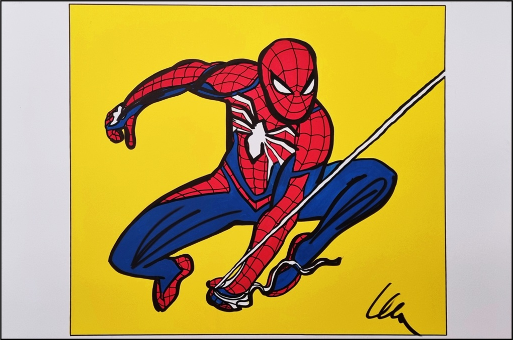LODOLA MARCO Dorno 1955 "Spider Man" Acrilici e smalti su tela cm 150x100 del 2013. Firmata sul fronte in basso a destra e sul retro. Opera archiviata e pubblicata sul Catalogo Generale a pag. 189. Autentica su foto.