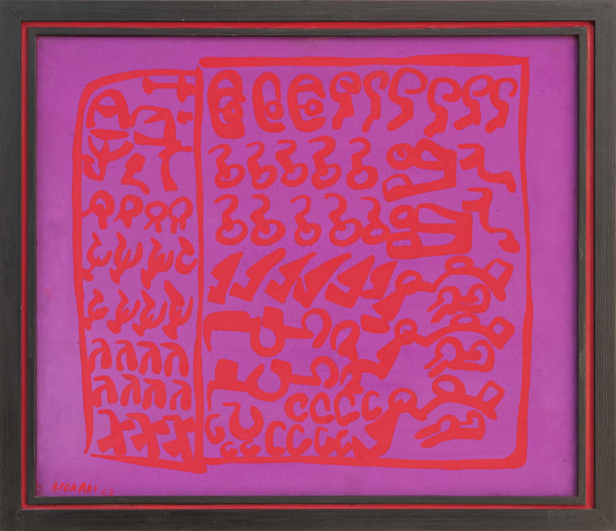 CARLA ACCARDI (Trapani, 1924 - Roma, 2014) Carminio - violetto 1962 tempera...
