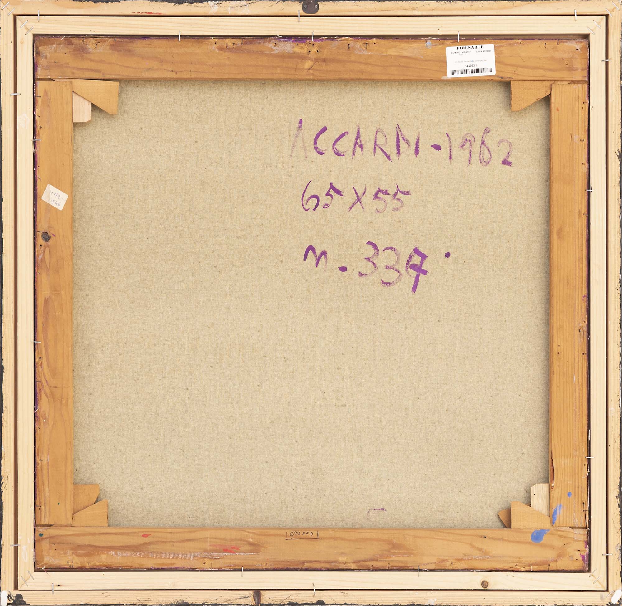 autentica dell'Artista in data 1992, certificato di autenticità a cura dello Studio Accardi Roma con relativo nr. di inventario su foto