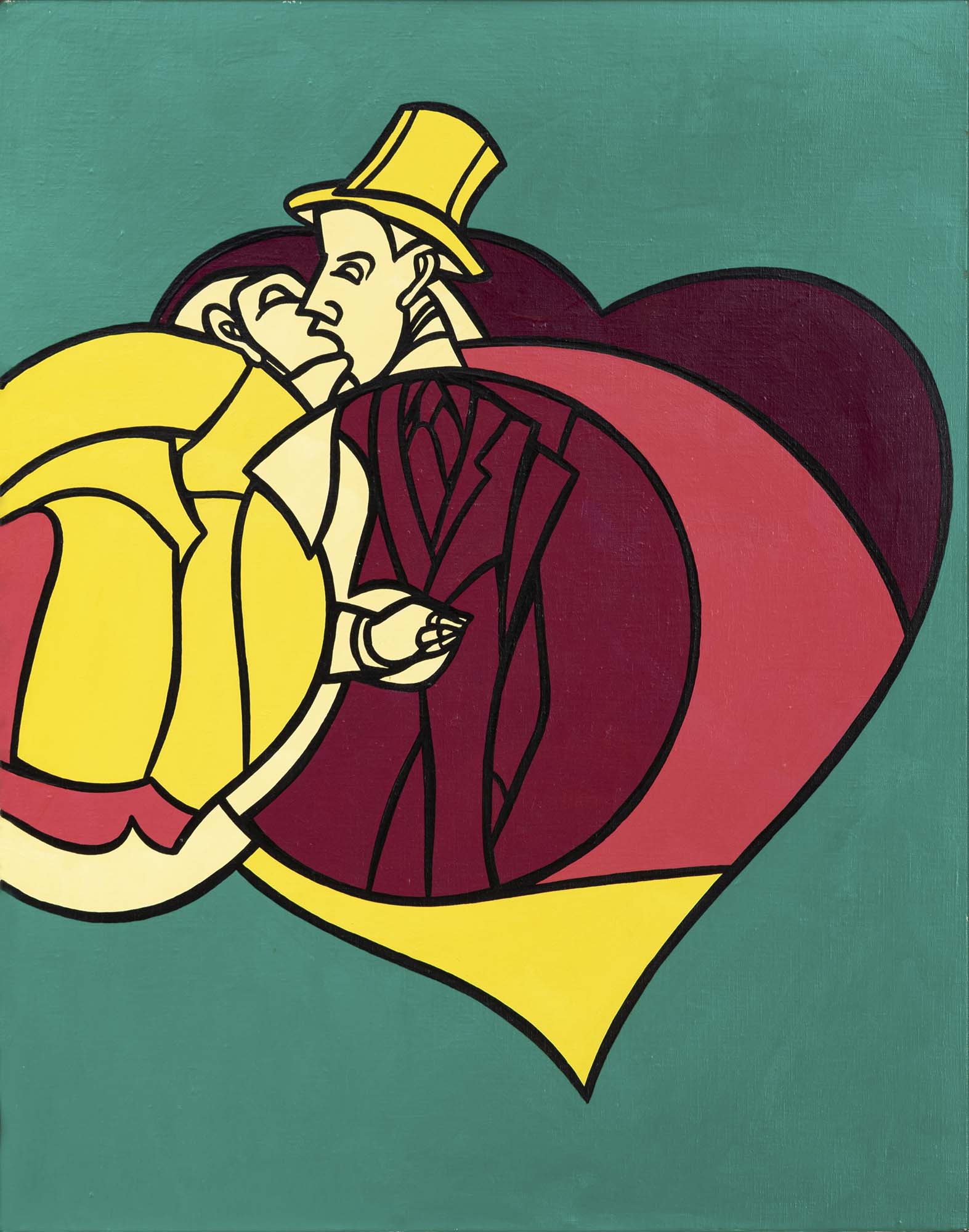 VALERIO ADAMI (Bologna, 1935) Il bacio acrilici su tela cm. 81x65 firma al...