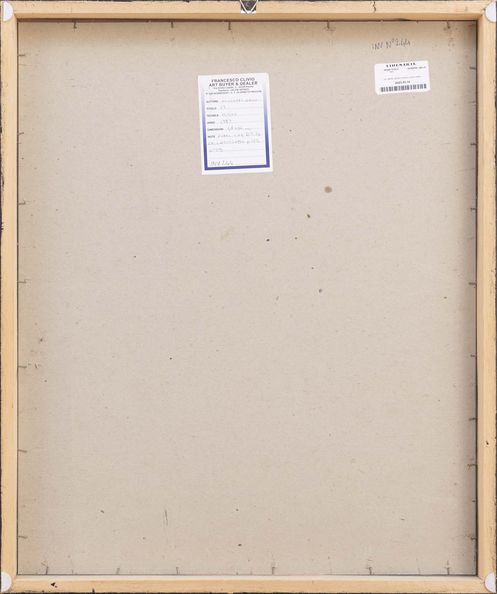 Galleria Francesco Clivio Art Buyer & Dealer Parma - etichetta al retro