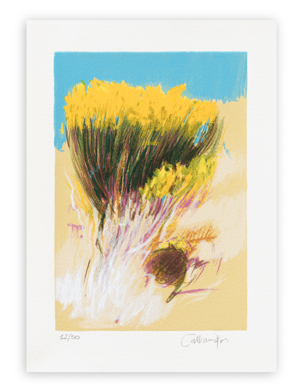 Firma e numerazione (Esemplare 12/50) a matita al fronte