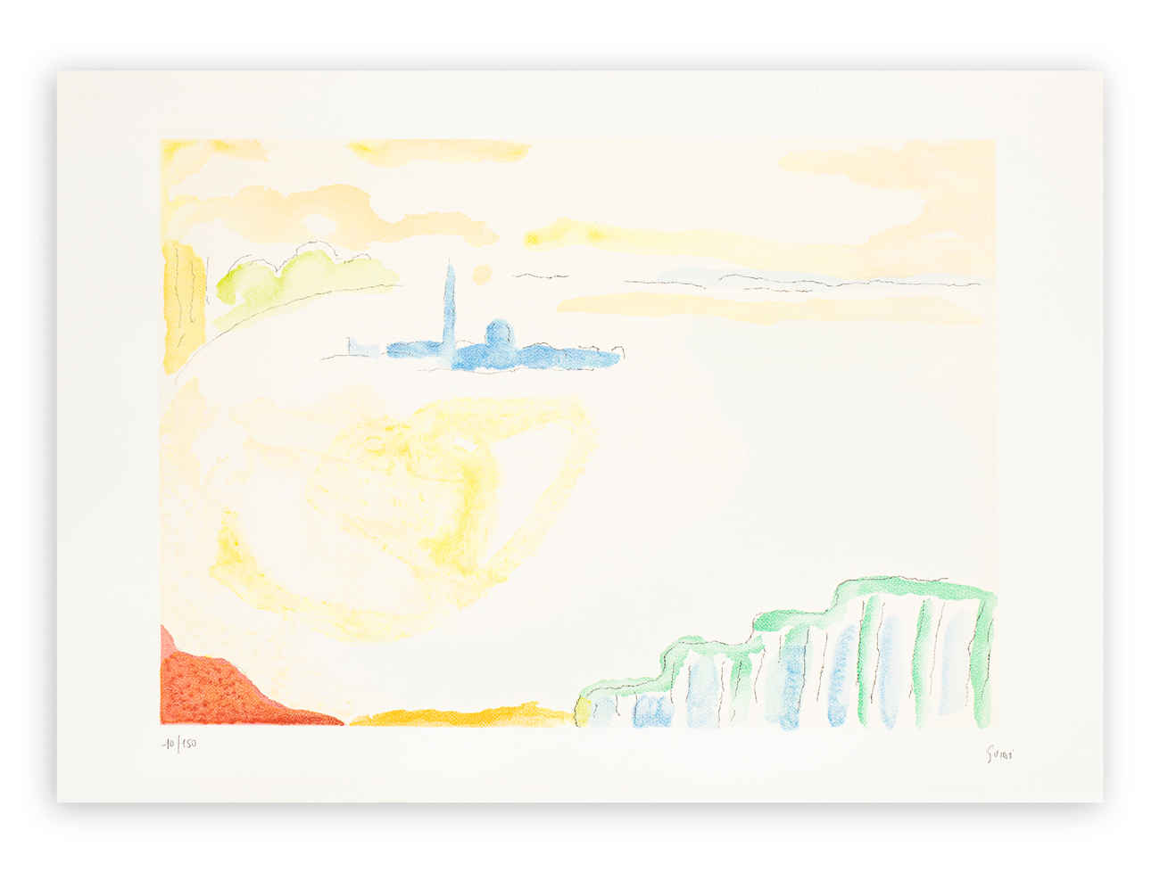 Firma e numerazione (Esemplare 10/150) a matita al fronte