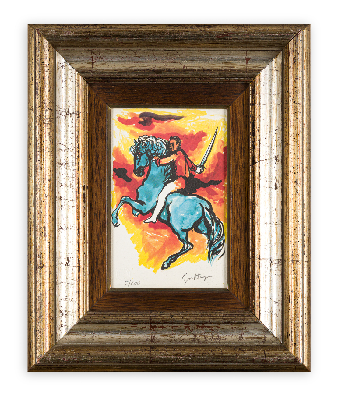 Firma su 4 carte (Il Cavallo di Coppe, il Cavallo di Spade, la Donna di Coppe ed il Matto), numerazione (Esemplare 5/200) e timbro a secco dello stampatore su tutte le carte