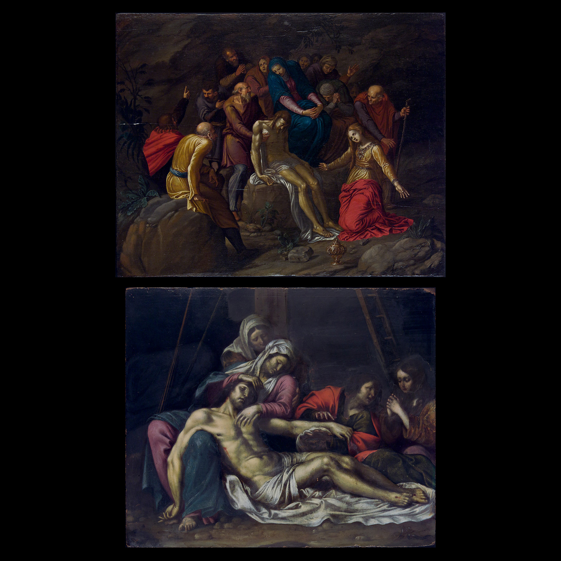Pittore umbro dell'inizio del XVII secolo, Coppia di tavolette raffiguranti il Compianto sul Cristo morto