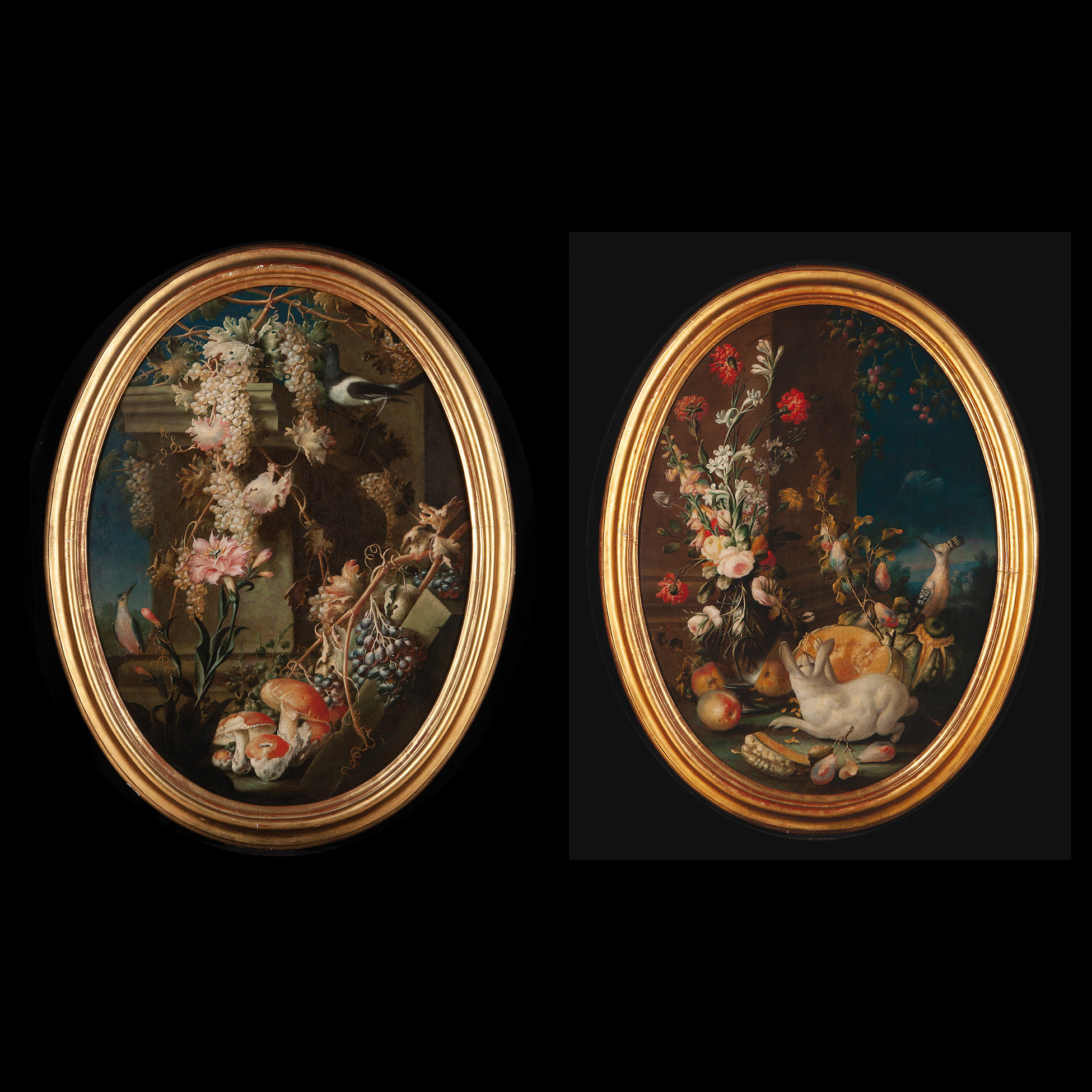 Felice Rubbiani (Modena, 1677 – San Pancrazio di Freto, 1752) Coppia di nature morte con cornici ovali