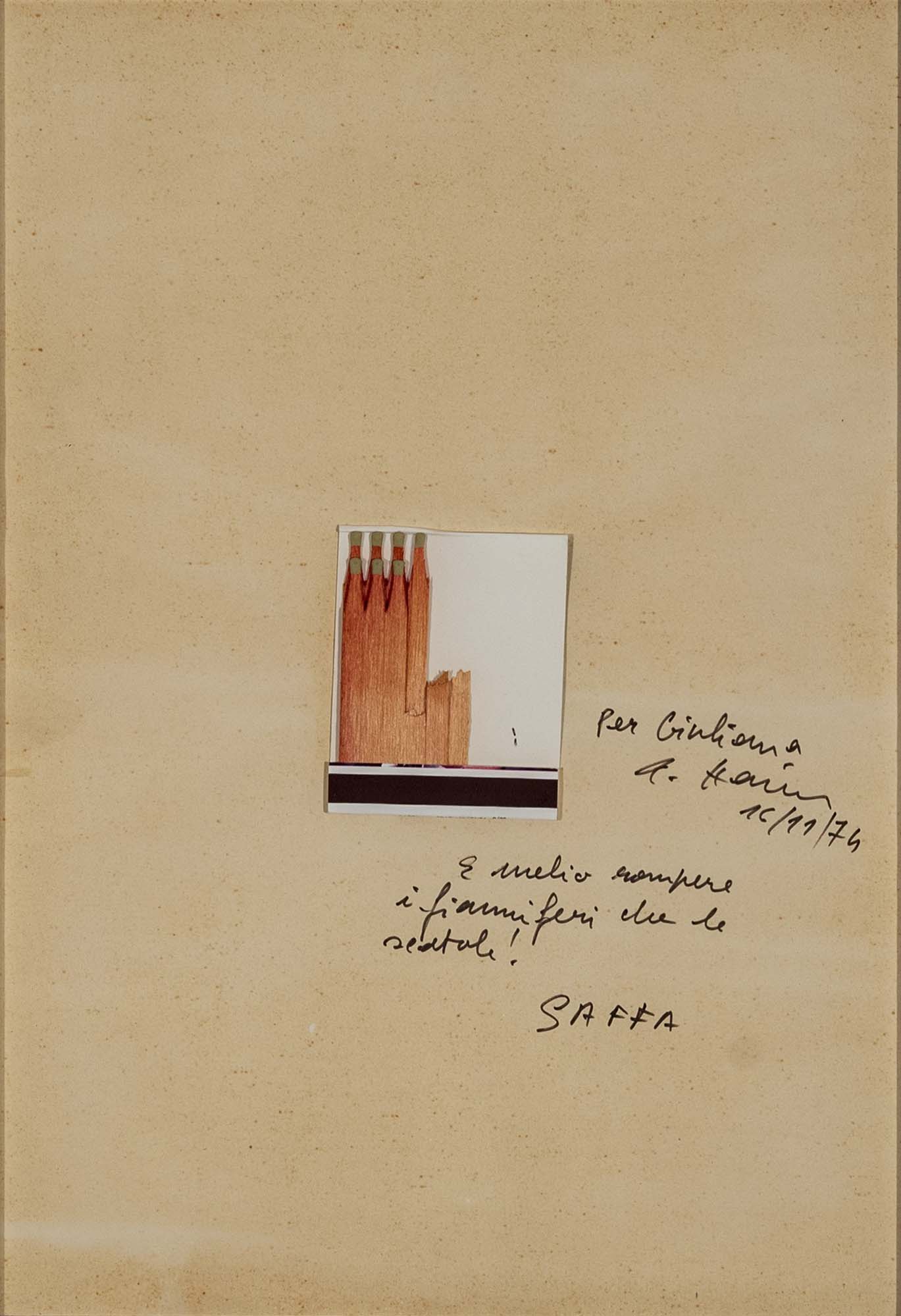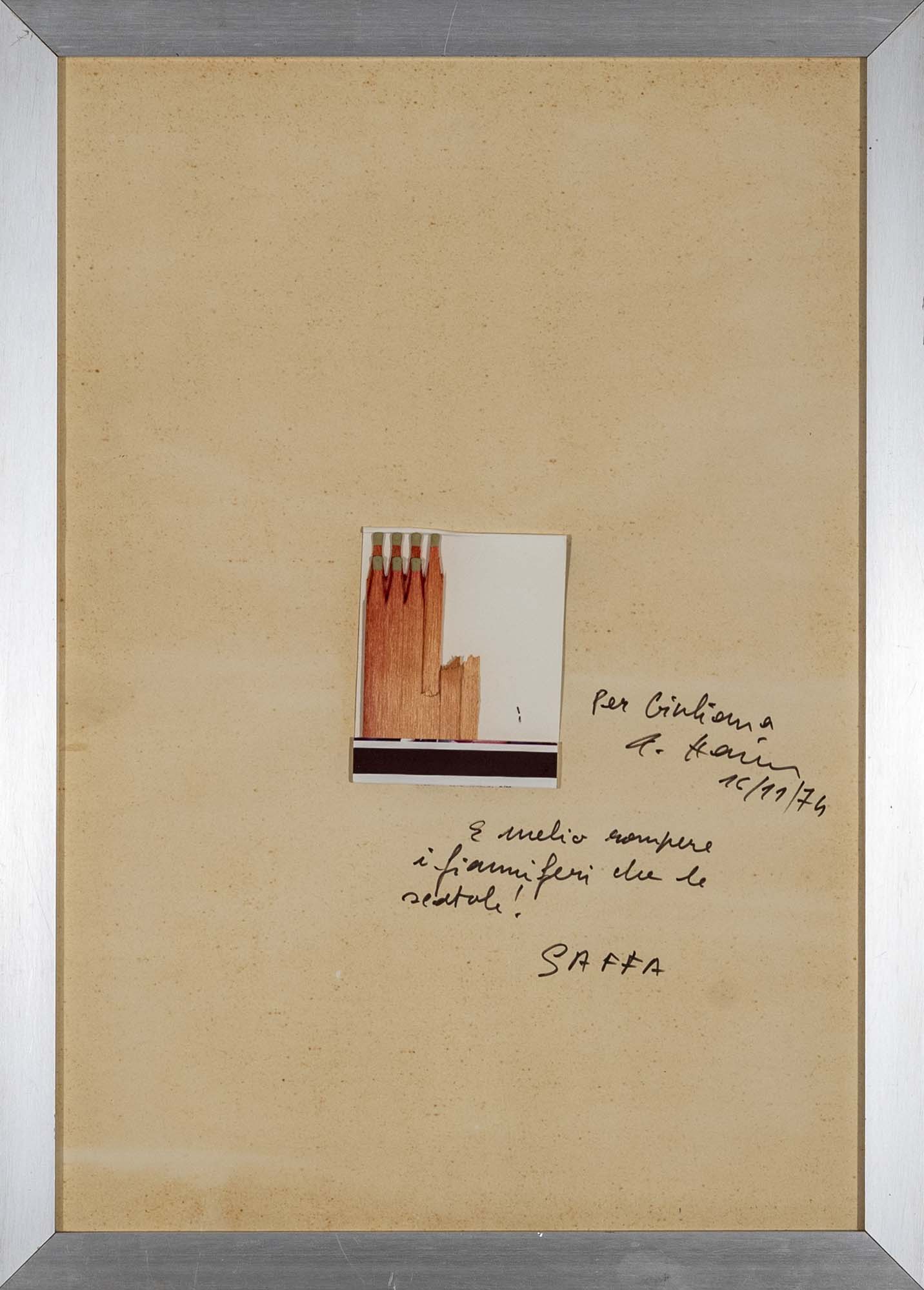 tecnica mista e collage di fiammiferi su carta riportata su tavola cm. 50x35