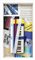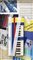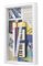tecnica mista, collage e applicazione di strumento musicale su tavola entro teca cm. 90x50x11