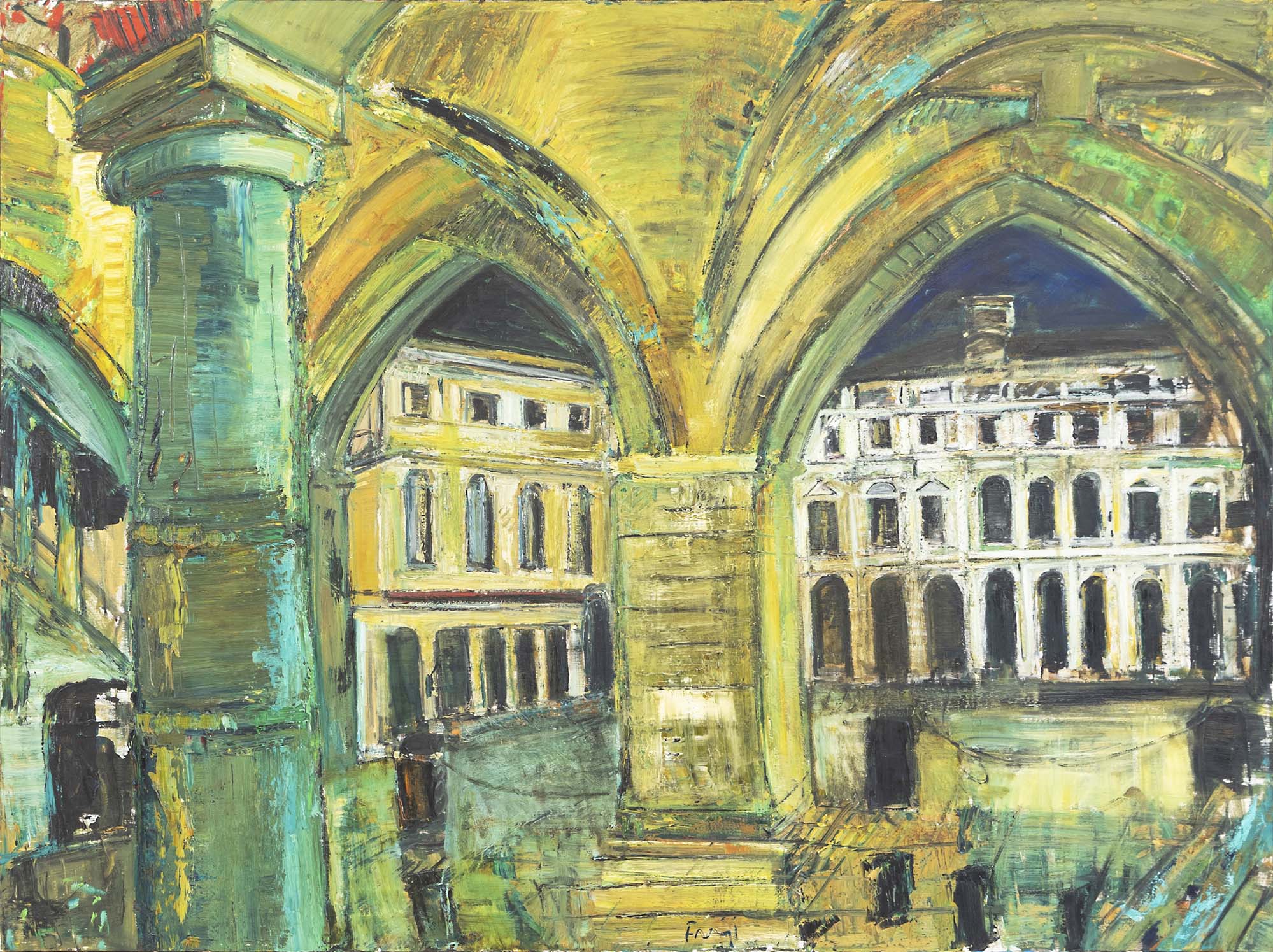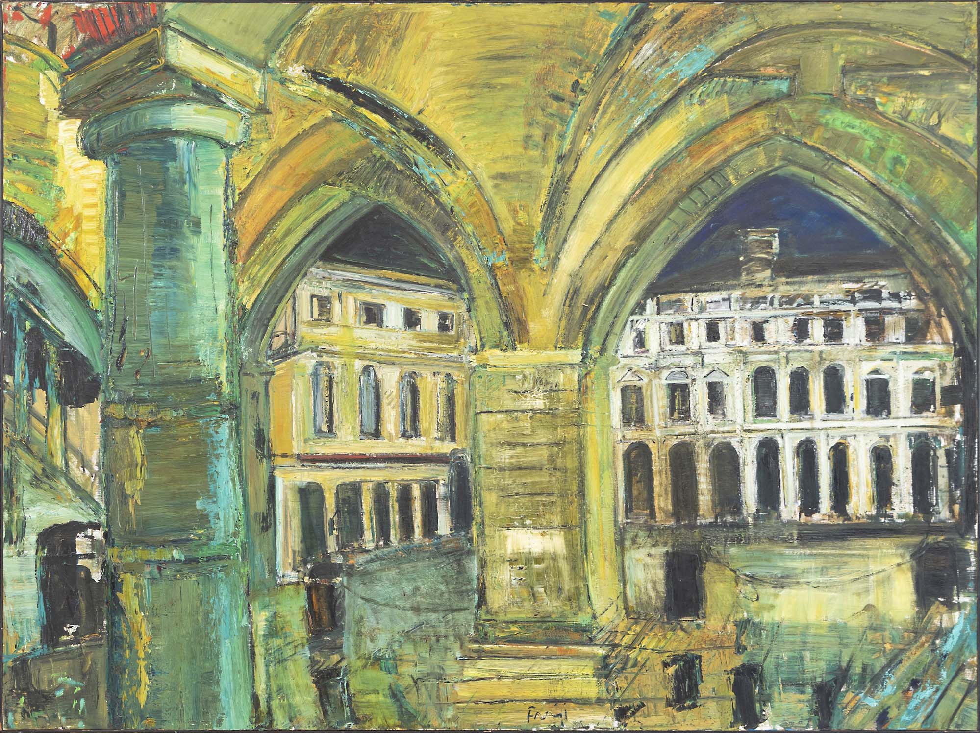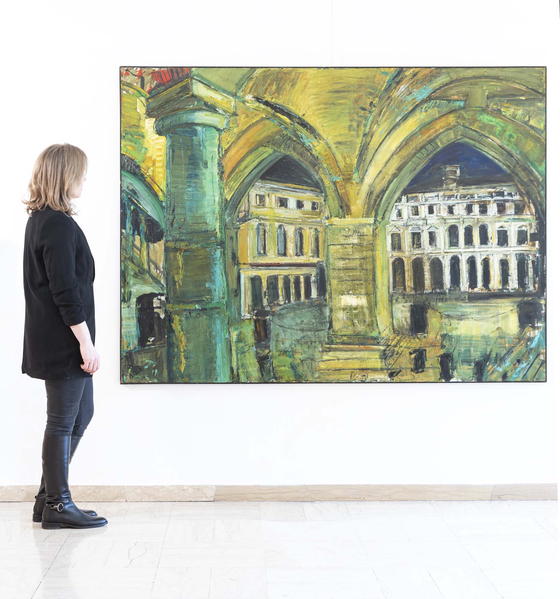 Lot 245 | GIOVANNI FRANGI (Milano , 1959) Piazza vecchia 1995 olio su tela cm. 150x200...