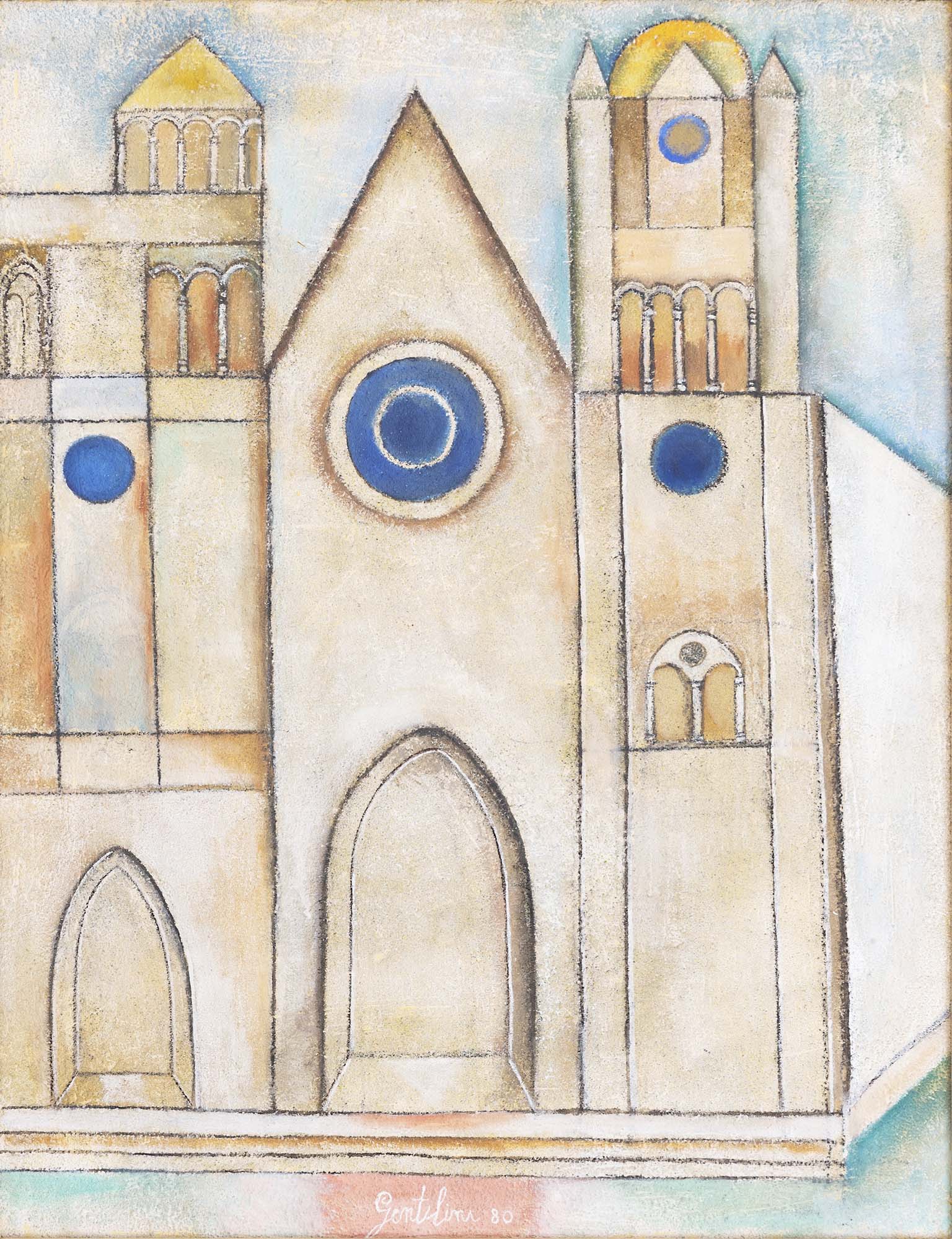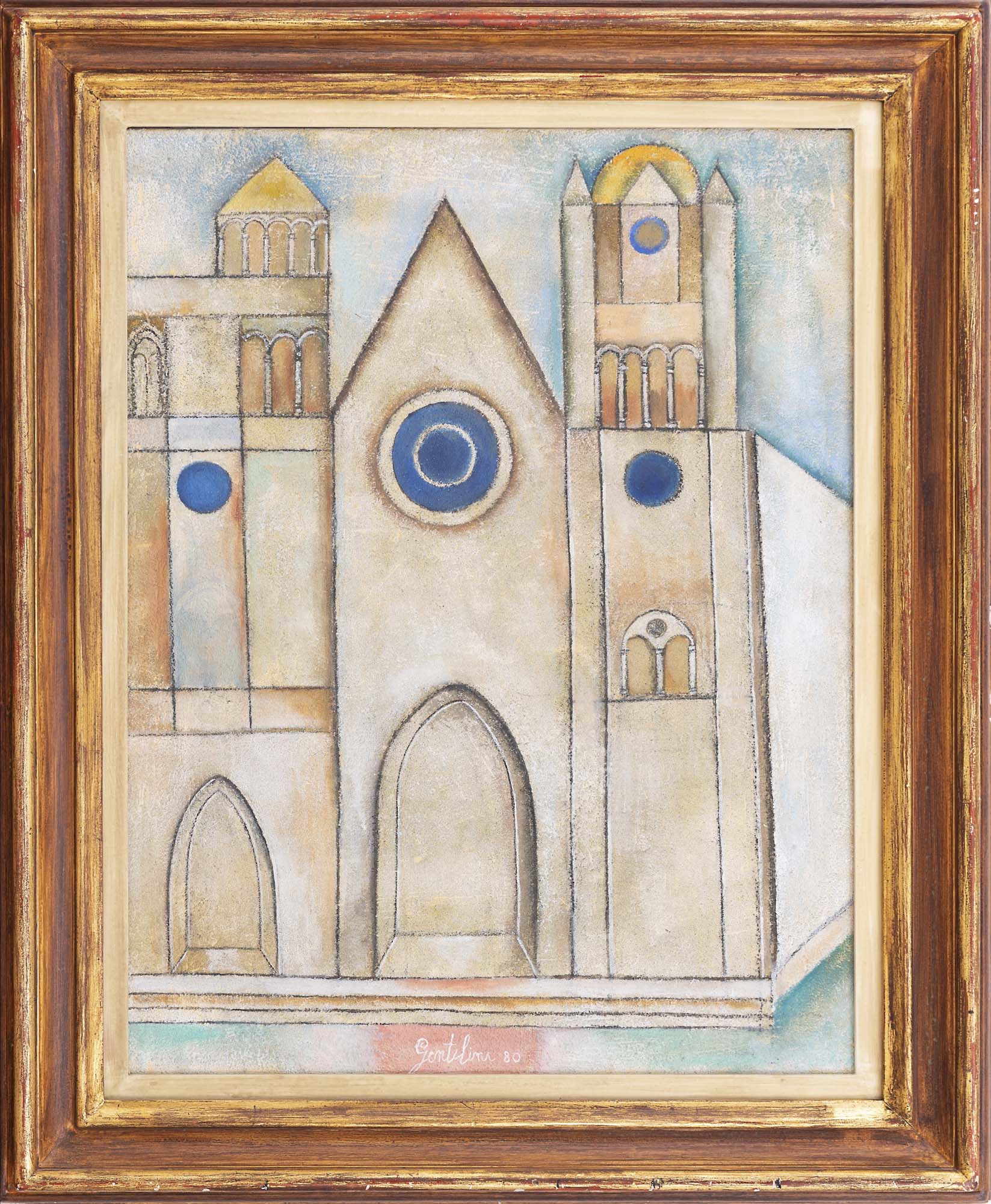 FRANCO GENTILINI (Faenza, 1909 - Roma, 1981) Cattedrale bianca 1980 olio su...