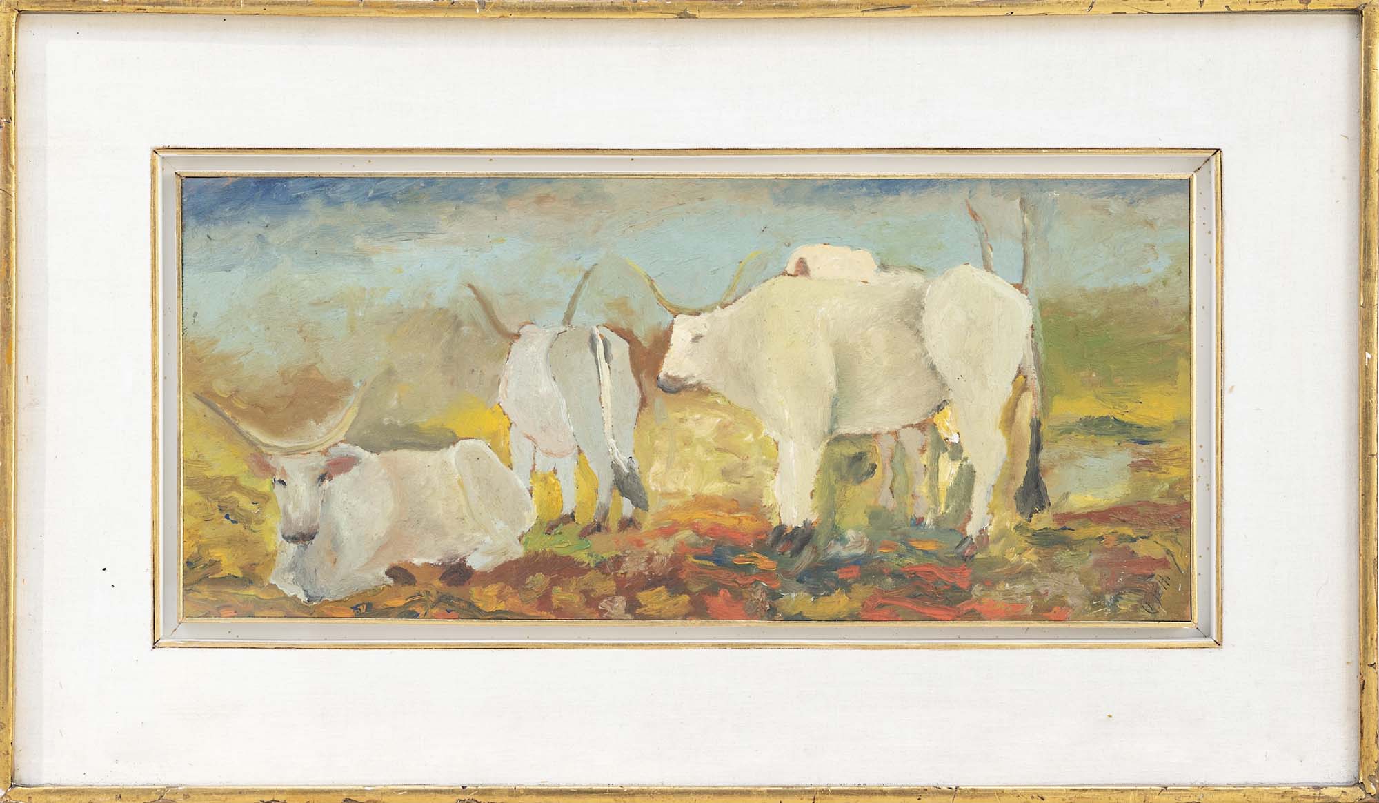 GIUSEPPE CESETTI (Tuscania, 1902 - Viterbo, 1991) Buoi al pascolo (1930) olio...